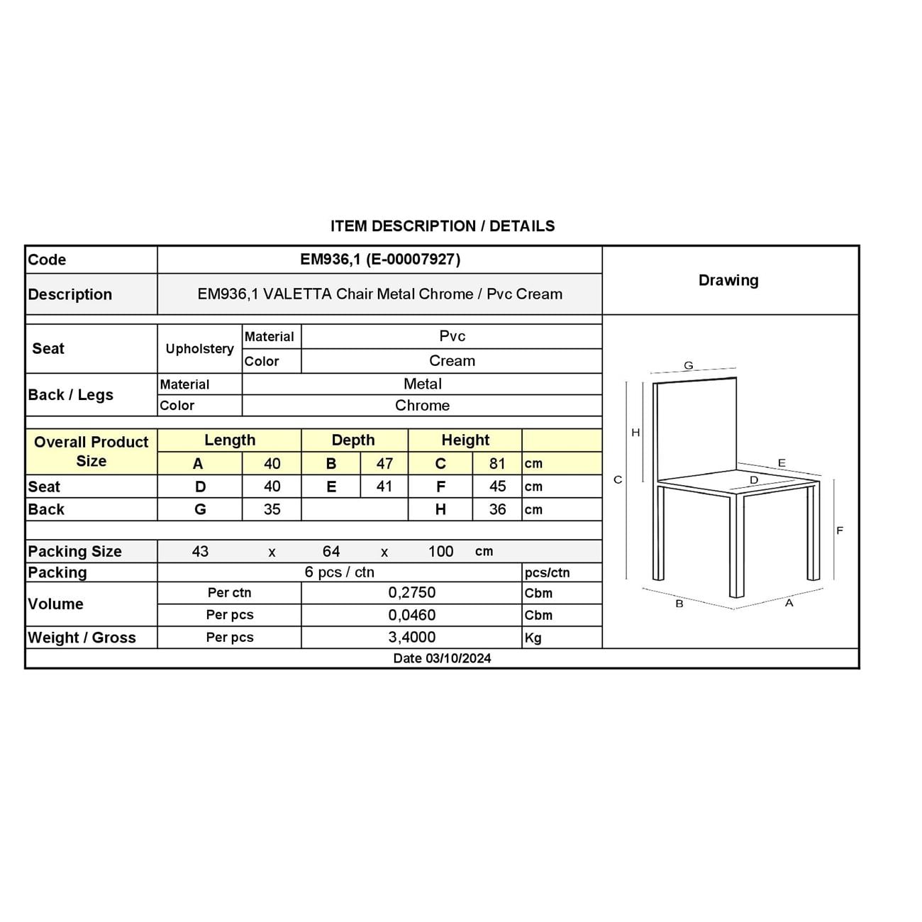 VALETTA Καρέκλα Τραπεζαρίας / Κουζίνας