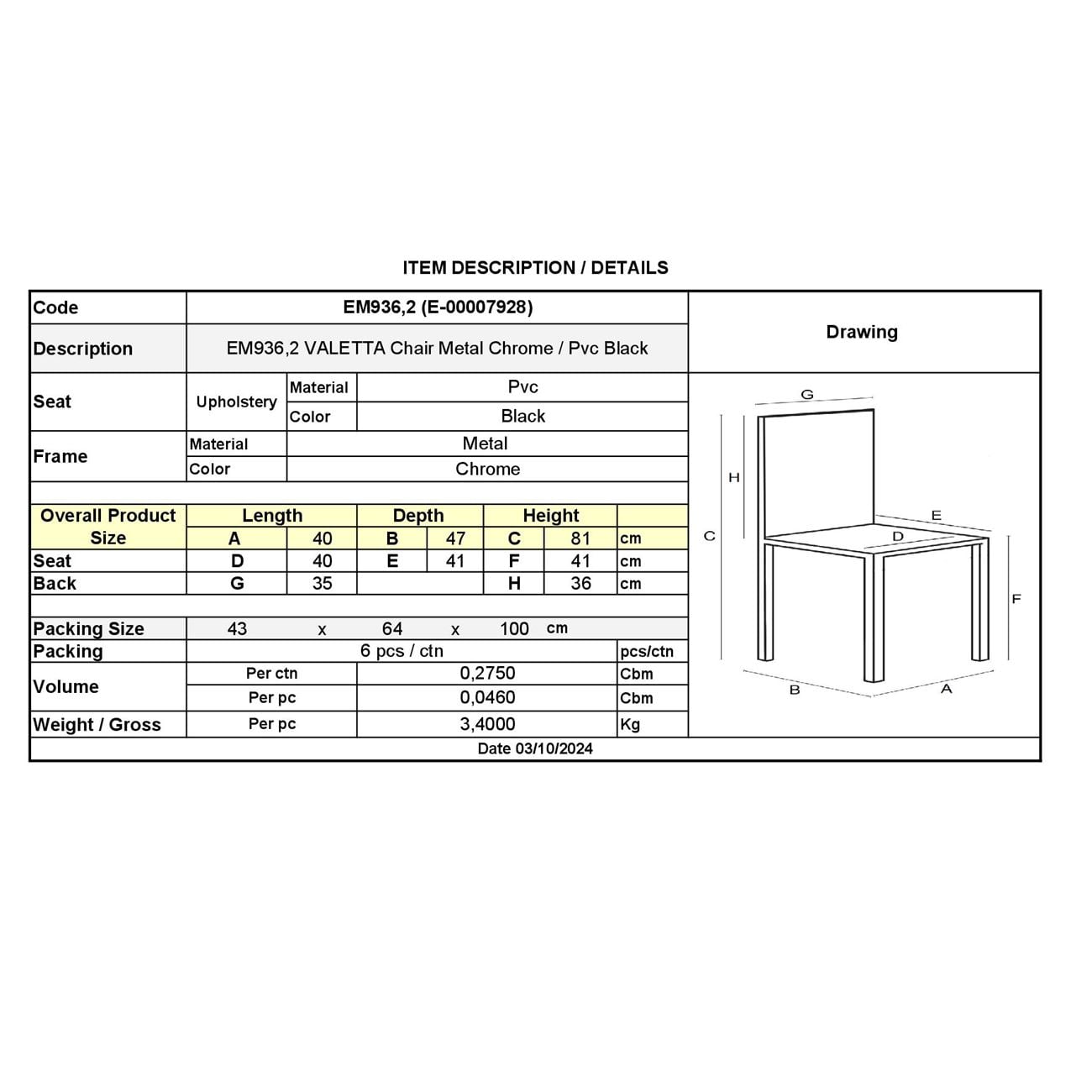 VALETTA Καρέκλα Τραπεζαρίας / Κουζίνας
