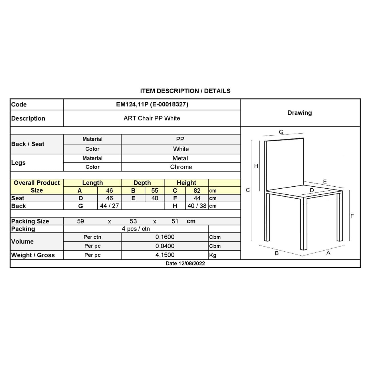 ΕΜ124,11P ART Καρέκλα PP Άσπρο