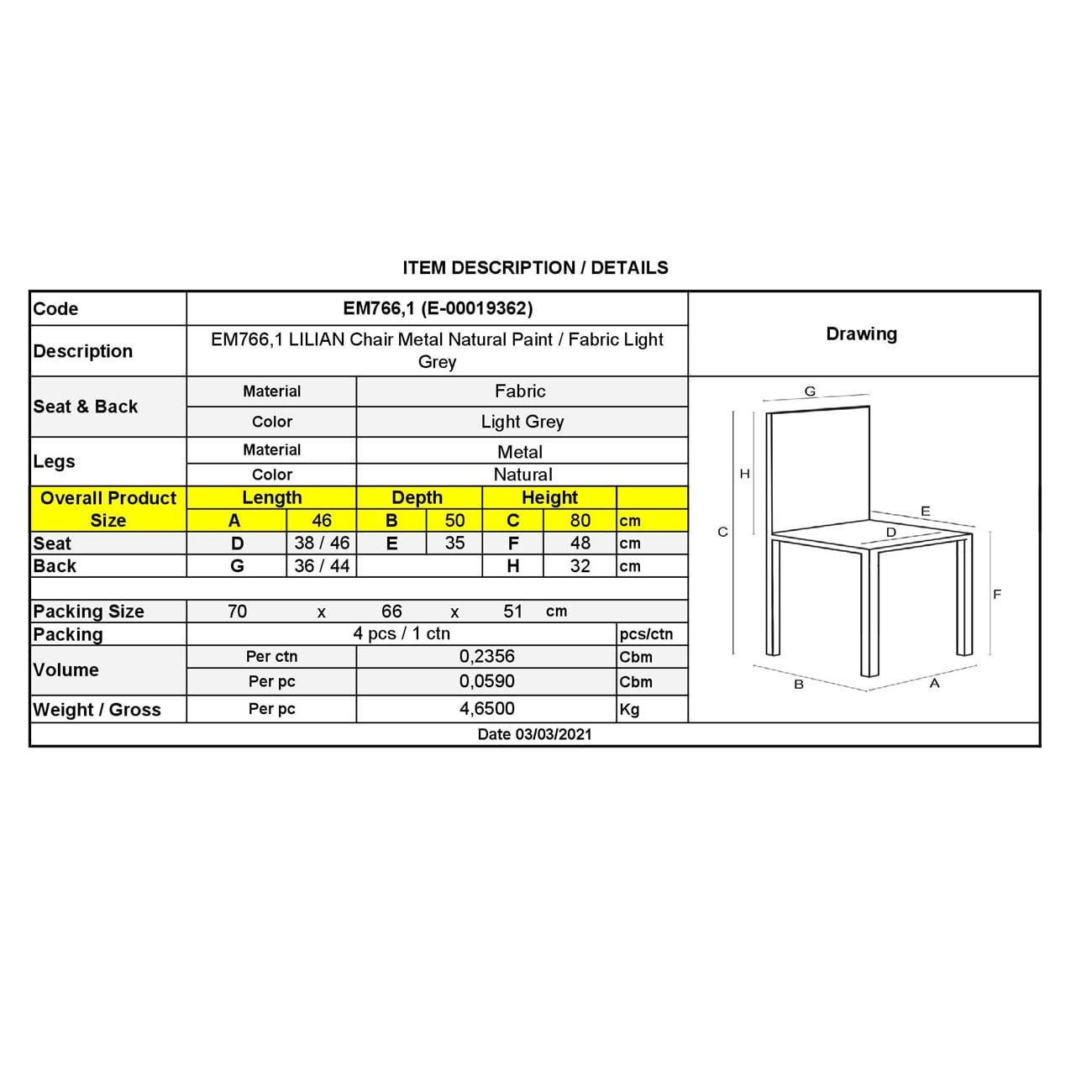 LILIAN Καρέκλα Tραπεζαρίας / Κουζίνας
