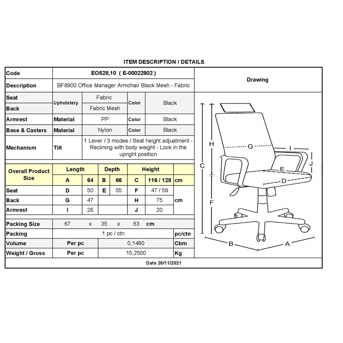 64x66x116/128cm