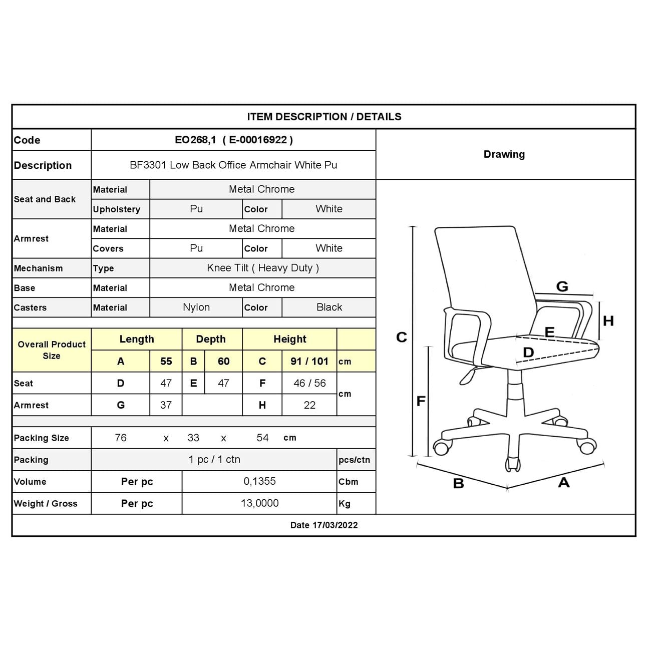 BF3301 Πολυθρόνα Γραφείου Εργασίας - Χαμηλή πλάτη