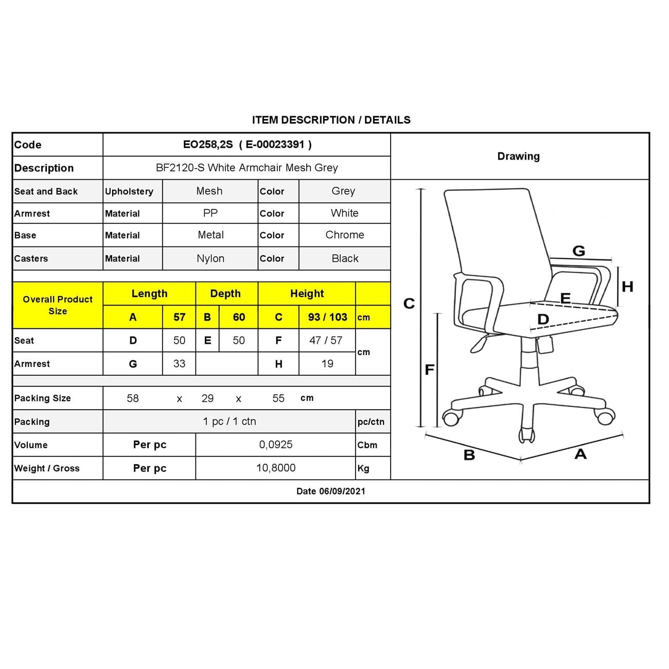 57x60x93/103cm