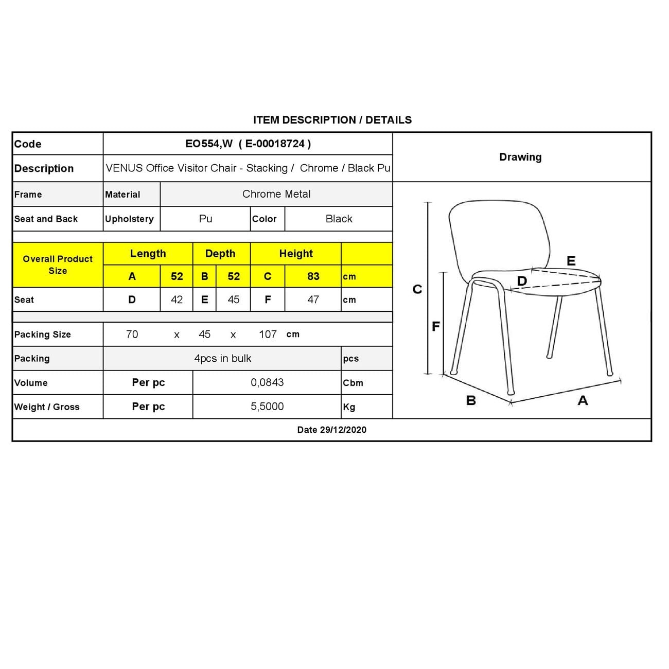 • Είδος: Καρέκλα Στοιβαζόμενη