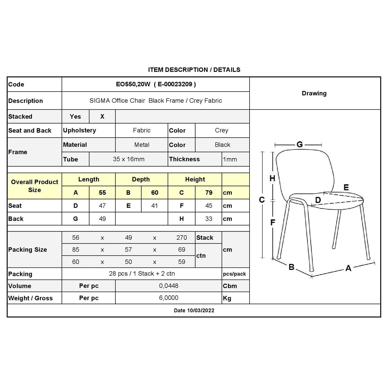 SIGMA Καρέκλα Γραφείου Επισκέπτη - Βοηθητική / Στοιβαζόμενη