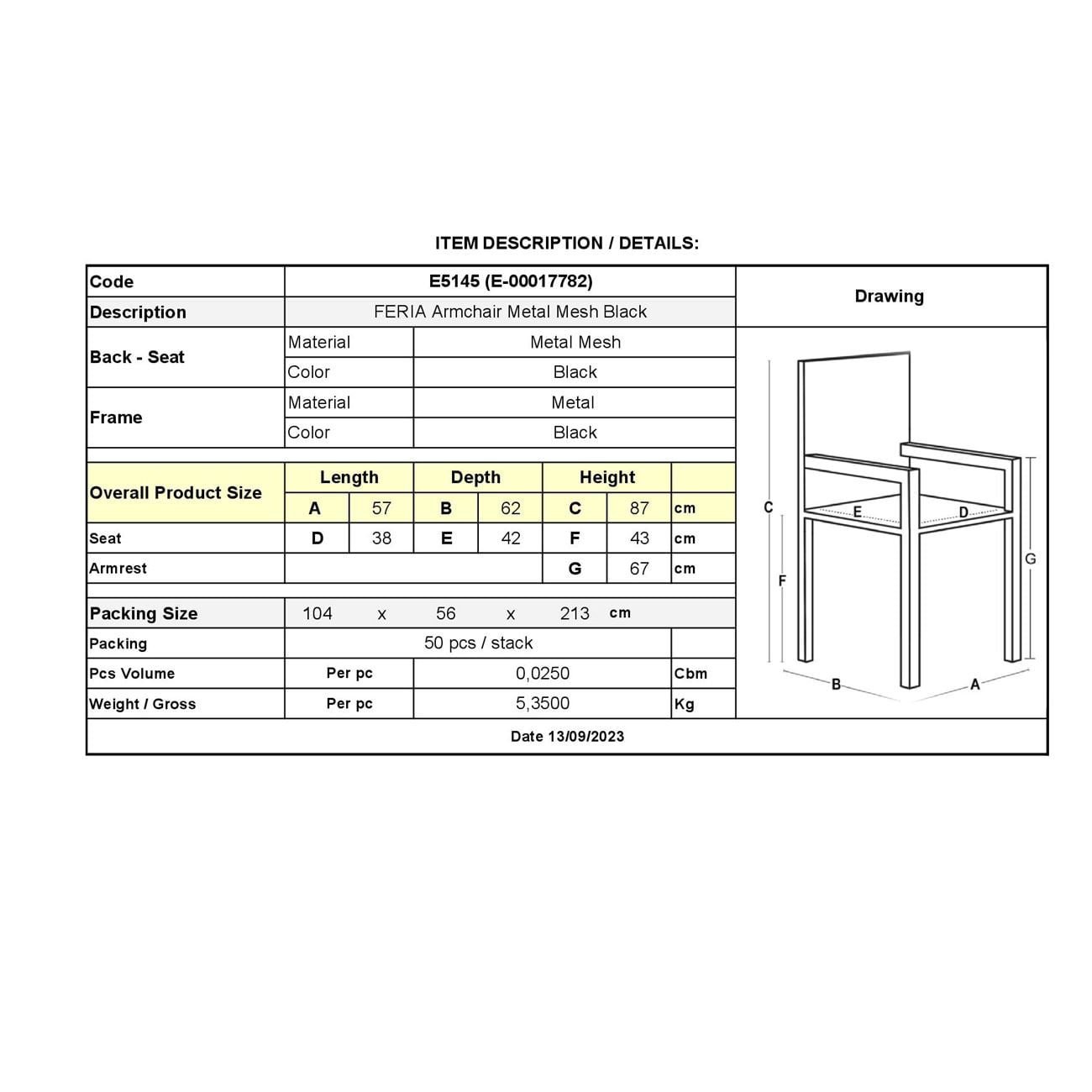 • Είδος: Πολυθρόνα Στοιβαζόμενη