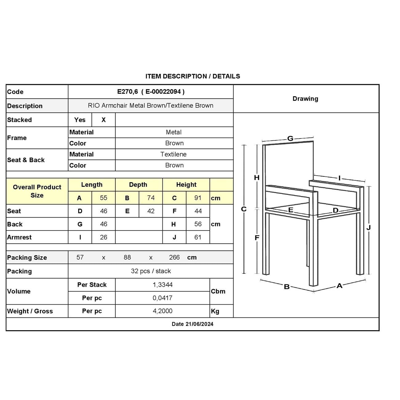 • Είδος: Πολυθρόνα Στοιβαζόμενη