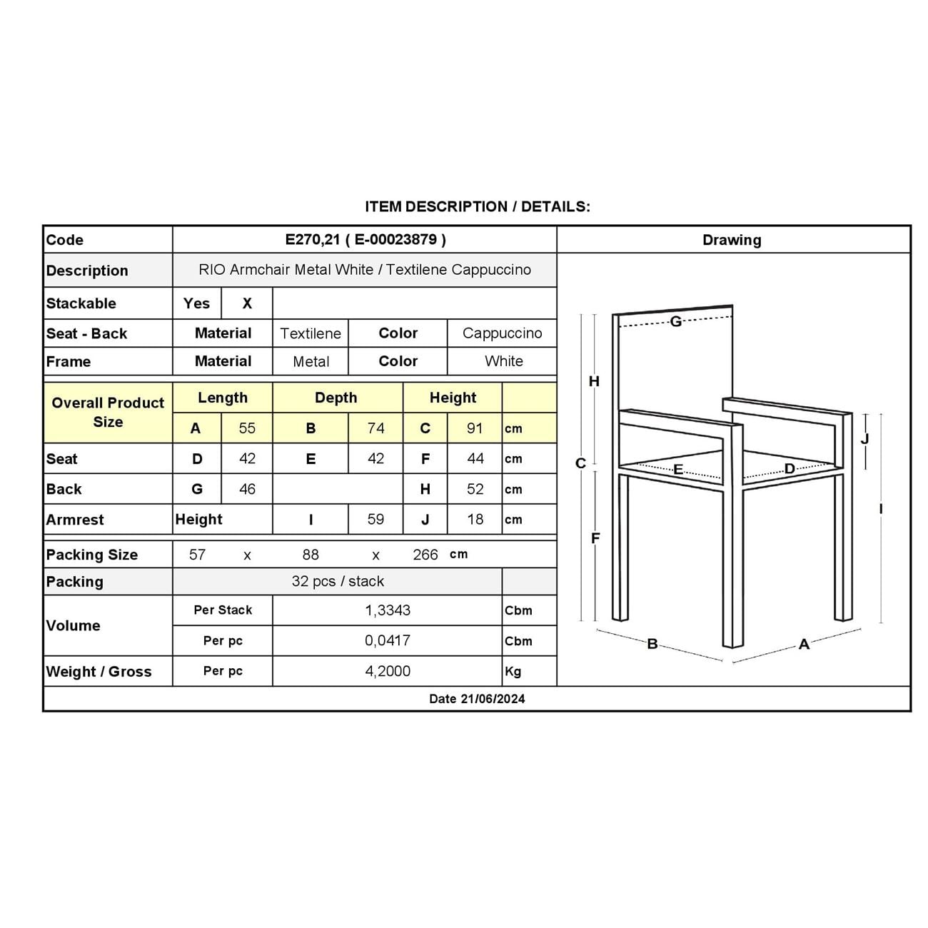 RIO Πολυθρόνα Τραπεζαρίας Κήπου - Βεράντας / Στοιβαζόμενη