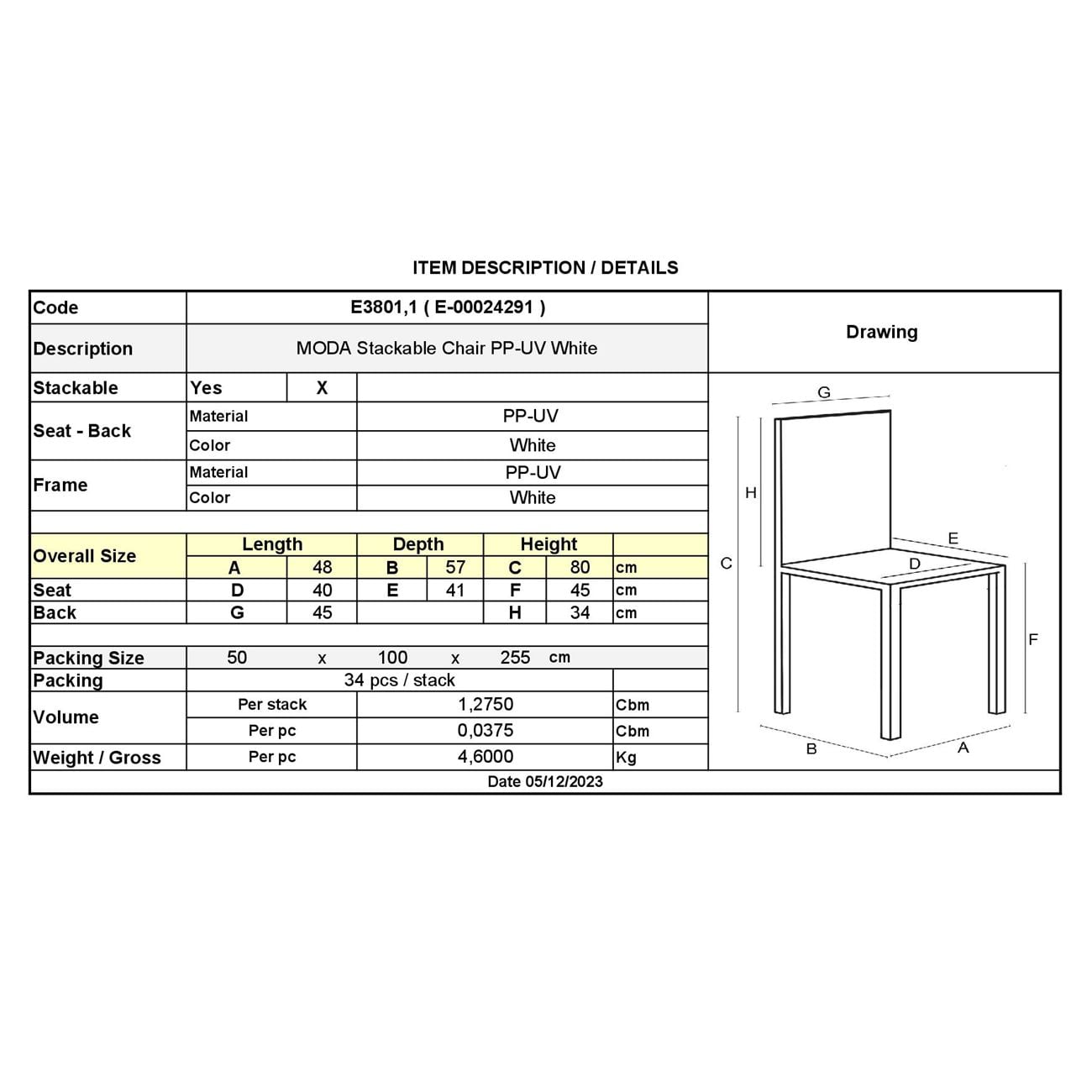 • Είδος: Καρέκλα Στοιβαζόμενη