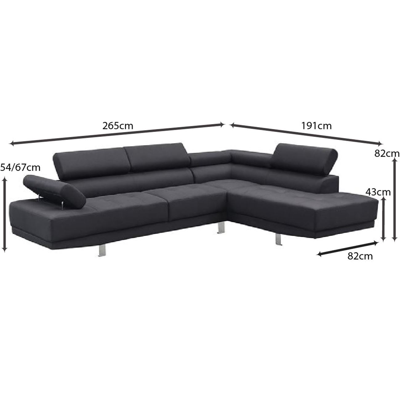 Γωνιακός καναπές (αριστερή γωνία) με ανακλινόμενα κεφαλάρια, σε ύφασμα Black.