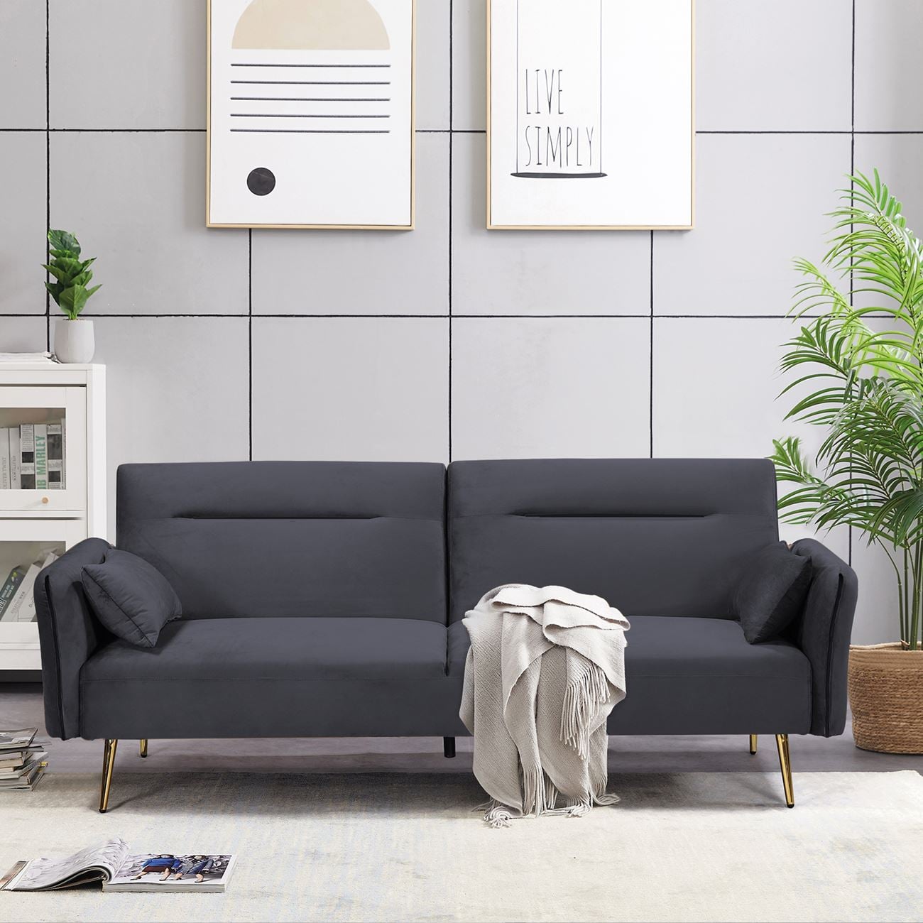 Καναπές-κρεβάτι 3-θέσιος, με ύφασμα Velure σε χρώμα Γκρι.