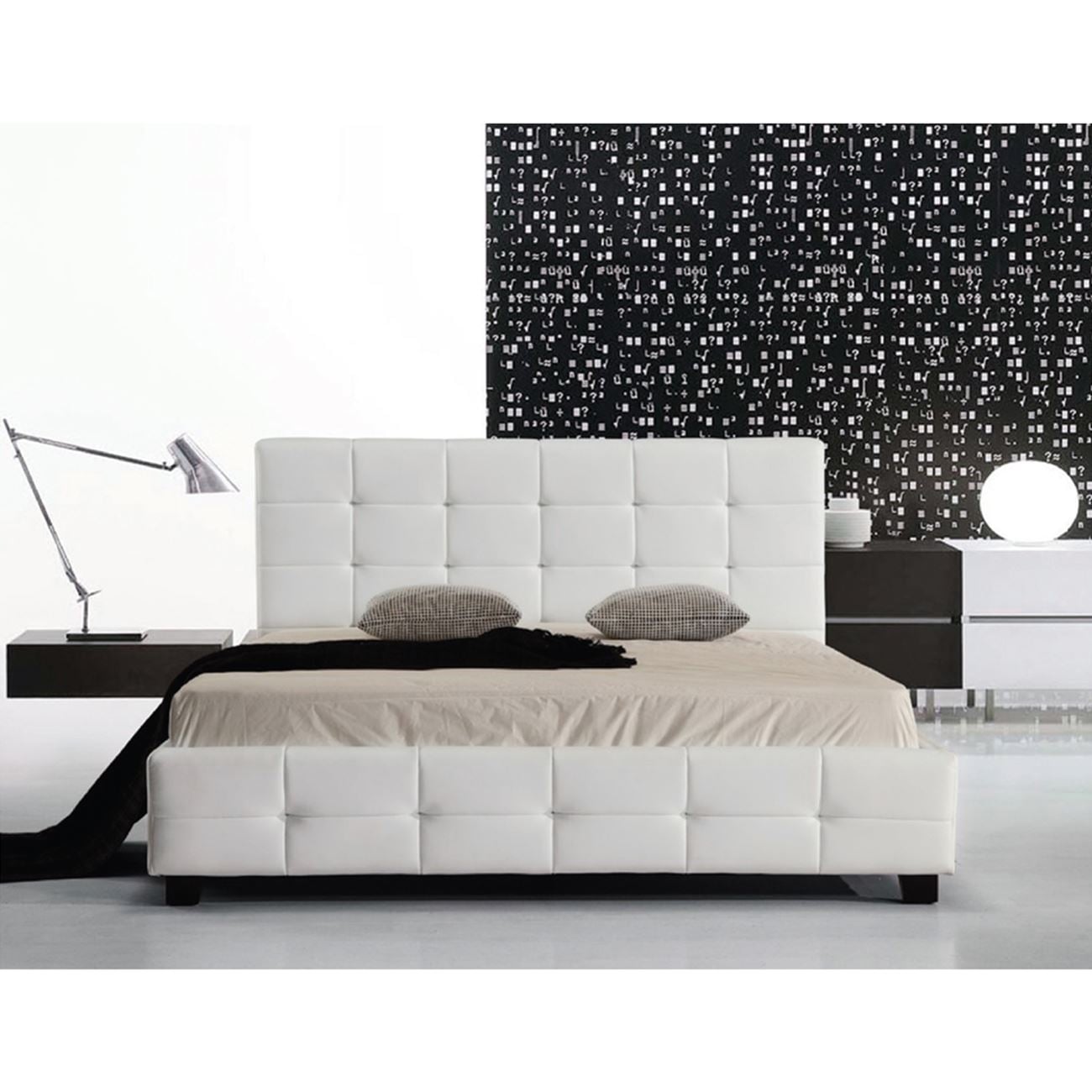 Κρεβάτι διπλό, με ύφασμα Pu σε χρώμα Άσπρο.