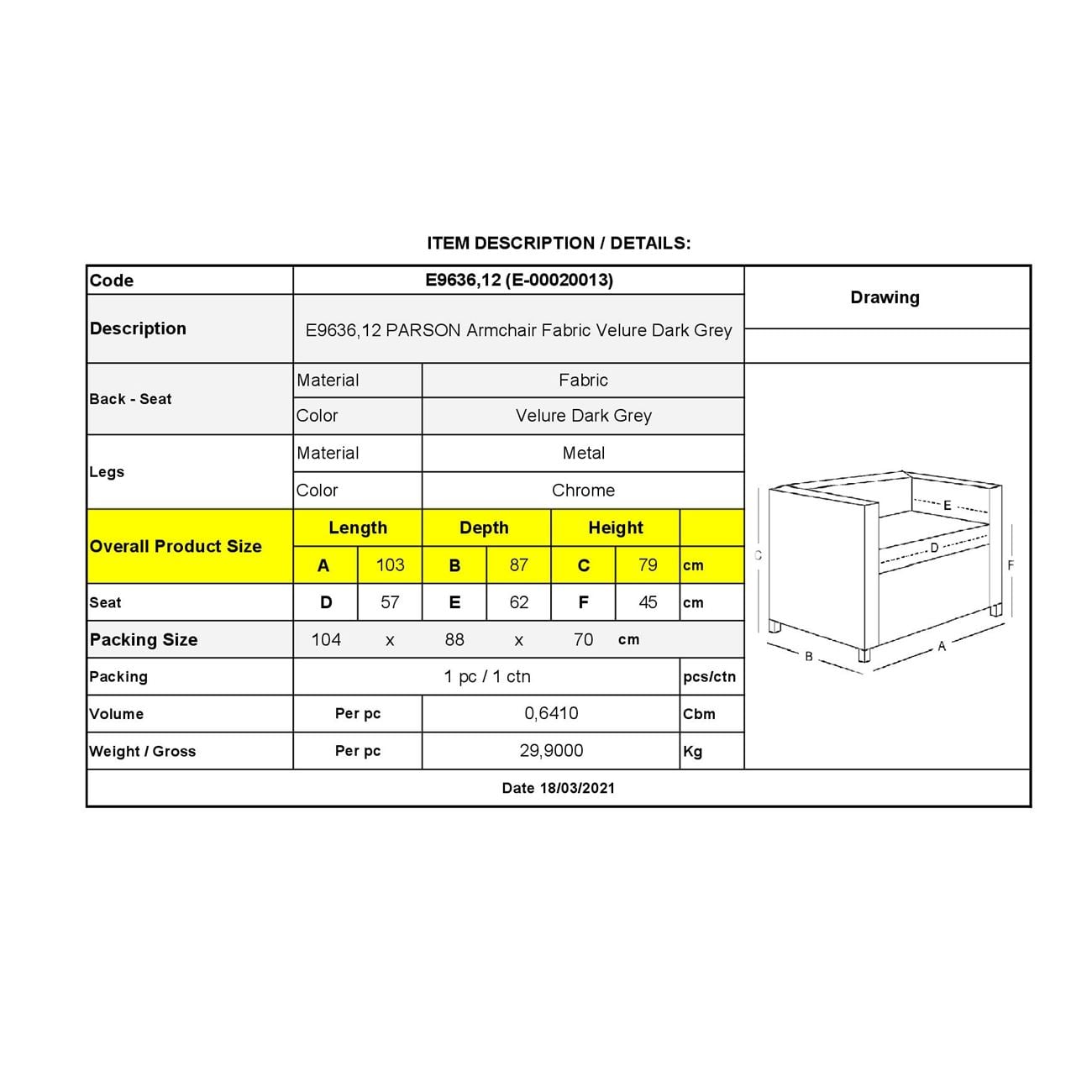 Πολυθρόνα, με ύφασμα Velure σε χρώμα Σκούρο Γκρι.