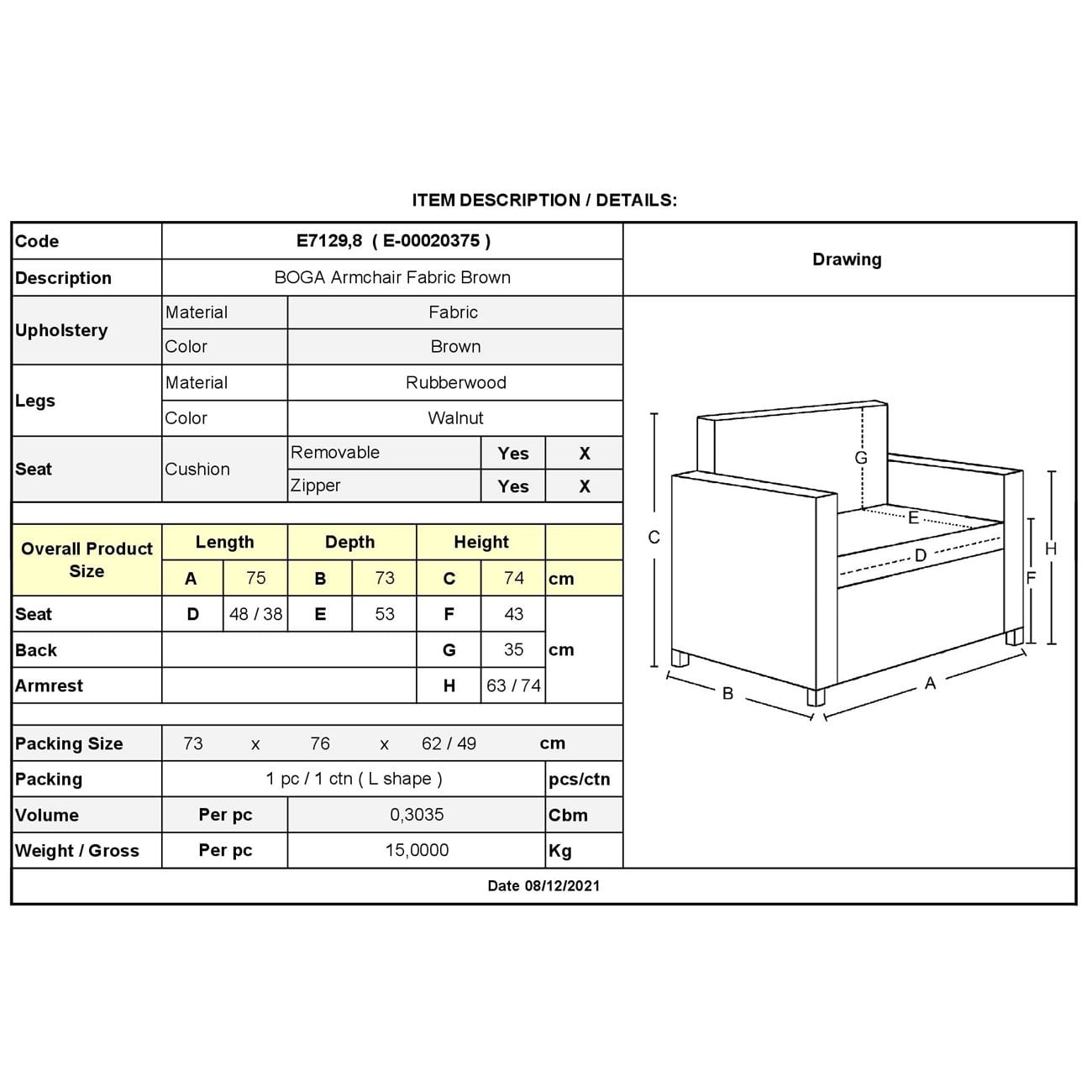 Πολυθρόνα, με ύφασμα σε χρώμα Καφέ.