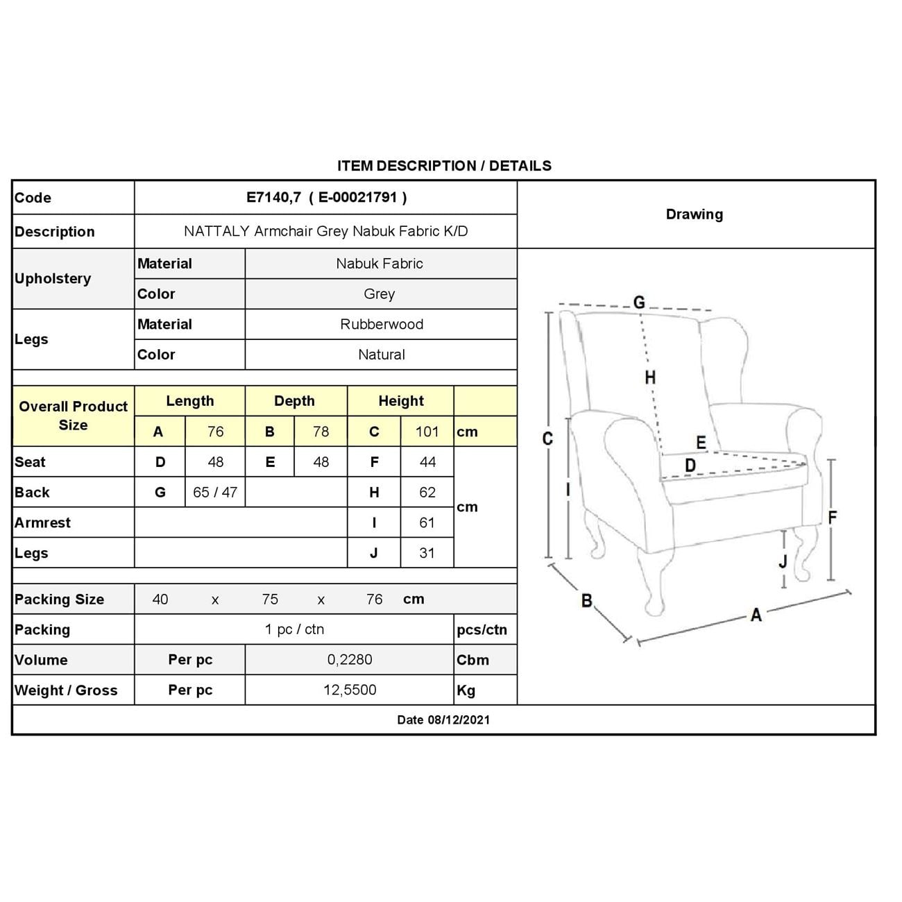 Πολυθρόνα, με ύφασμα Nabuk σε χρώμα Γκρι.