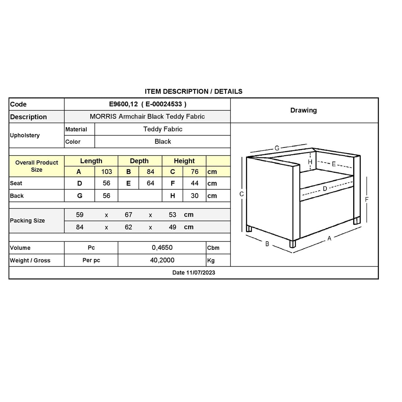 Πολυθρόνα, με ύφασμα Teddy σε χρώμα Μαύρο.