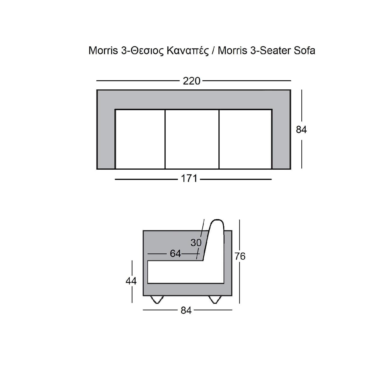 Καναπές 3-θέσιος, με ύφασμα Teddy σε χρώμα Μαύρο.