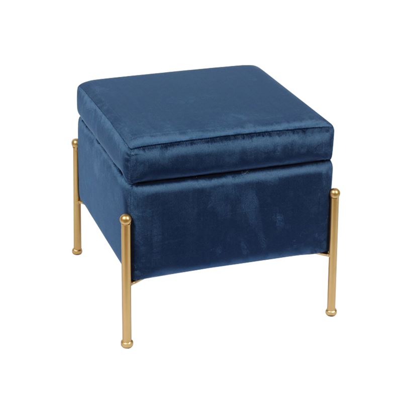 Σκαμπό με αποθηκευτικό χώρο, με ύφασμα Velure σε χρώμα Μπλε.