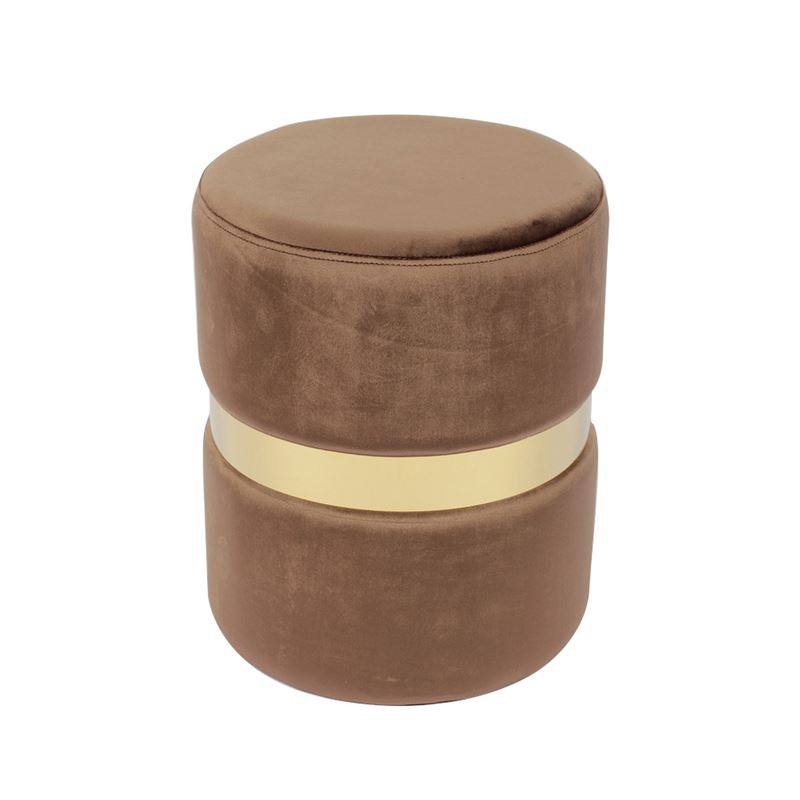 Σκαμπό με ύφασμα Velure σε χρώμα Καφέ & Μέταλλο σε χρώμα Χρυσό.