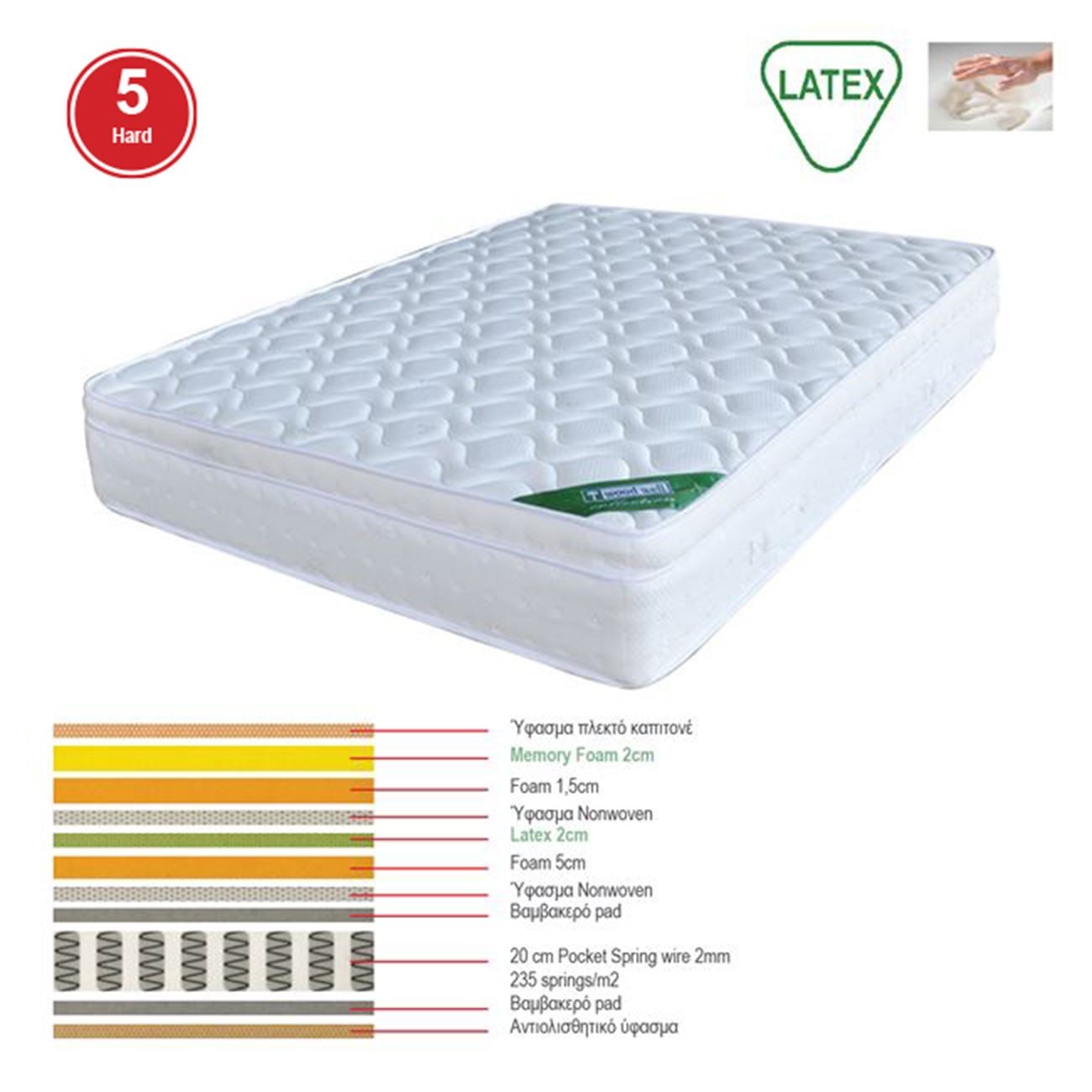 Στρώμα Μονής Όψης με Latex & Pocket Spring, Memory Foam.