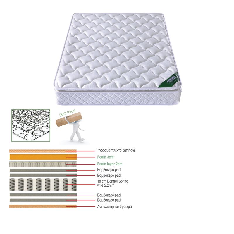 Στρώμα Μονής Όψης με ανώστρωμα, Bonnell Spring με Foam (Roll Pack).