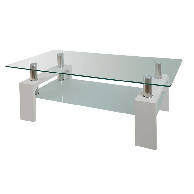 Τραπεζάκι σαλονιού γυάλινο, με ράφι και πόδια σε Άσπρο χρώμα.