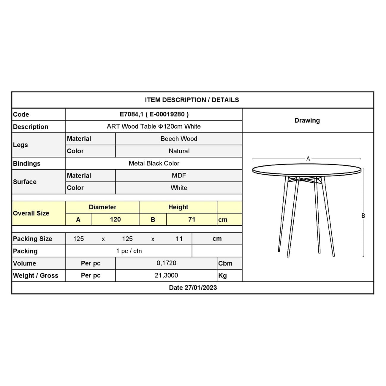 Διαστάσεις προϊόντος (ΜxΠxΥ): Φ.120 x Y.71