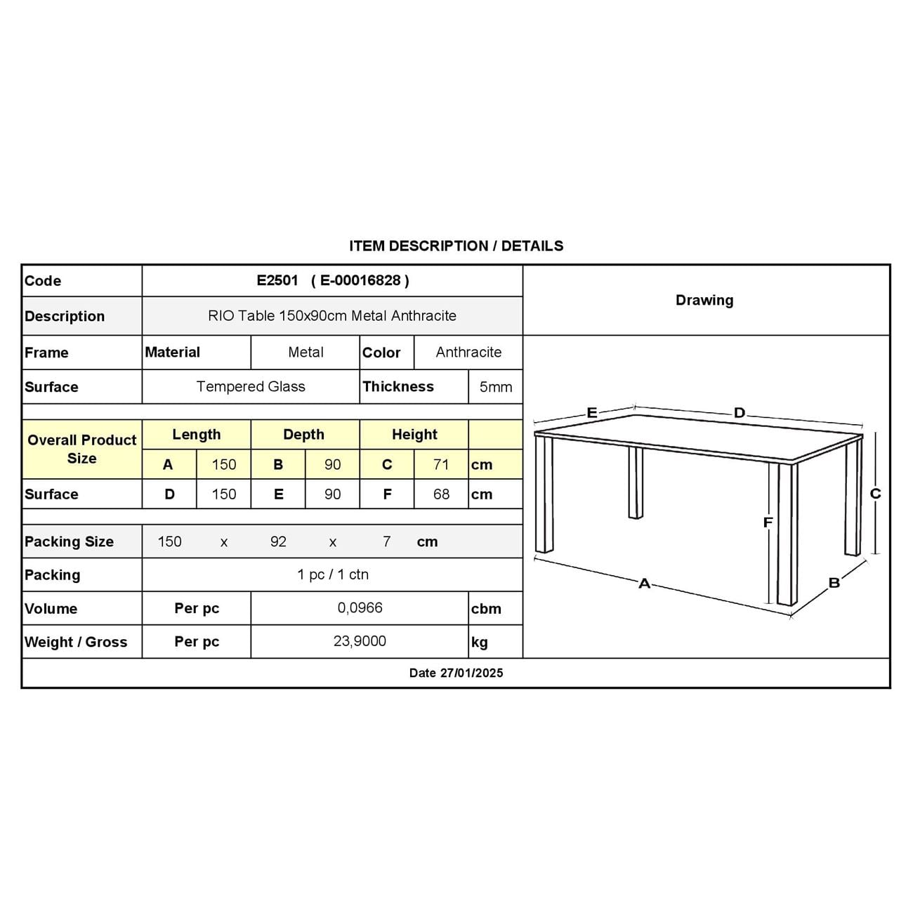 RIO Τραπέζι Τραπεζαρίας Κήπου - Βεράντας