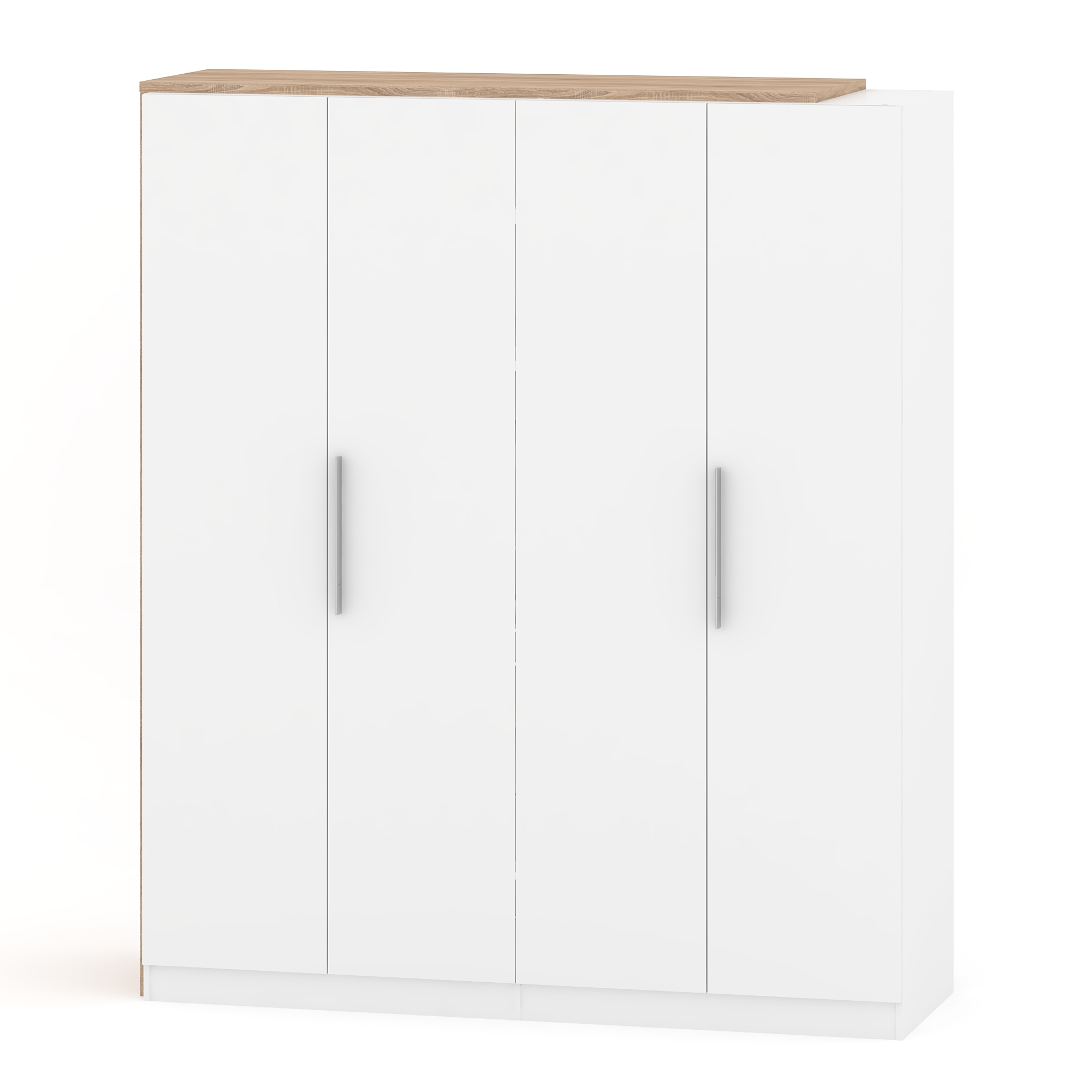Ντουλάπα 4-φυλλη Chess, με μεγάλο αποθηκευτικό χώρο και εντυπωσιακό σχεδιασμό. Διαχρονικό, καθαρό, διακριτικό, το λευκό είναι ένα παγκόσμιο χρώμα με τη δυνατότητα να μετατρέπει το χώρο σε πιο αέρινο και ευρύχωρο. Αυτό το ντεκόρ δημιουργεί ηρεμία και γαλήνη ενώ προσφέρει διαφορετικές επιλογές διακόσμησης, από μινιμαλιστικές και σύγχρονες σε κλασσικές και παραδοσιακές. Το Light Sonoma Oak είναι διακριτικό ντεκόρ σε ανοιχτό μπεζ χρώμα και χαρακτηριστικό σχέδιο ξύλου. Τα ίχνη πριονίσματος και οι γκριζωπές ραβδώσεις παραπέμπουν σε vintage εμφάνιση.