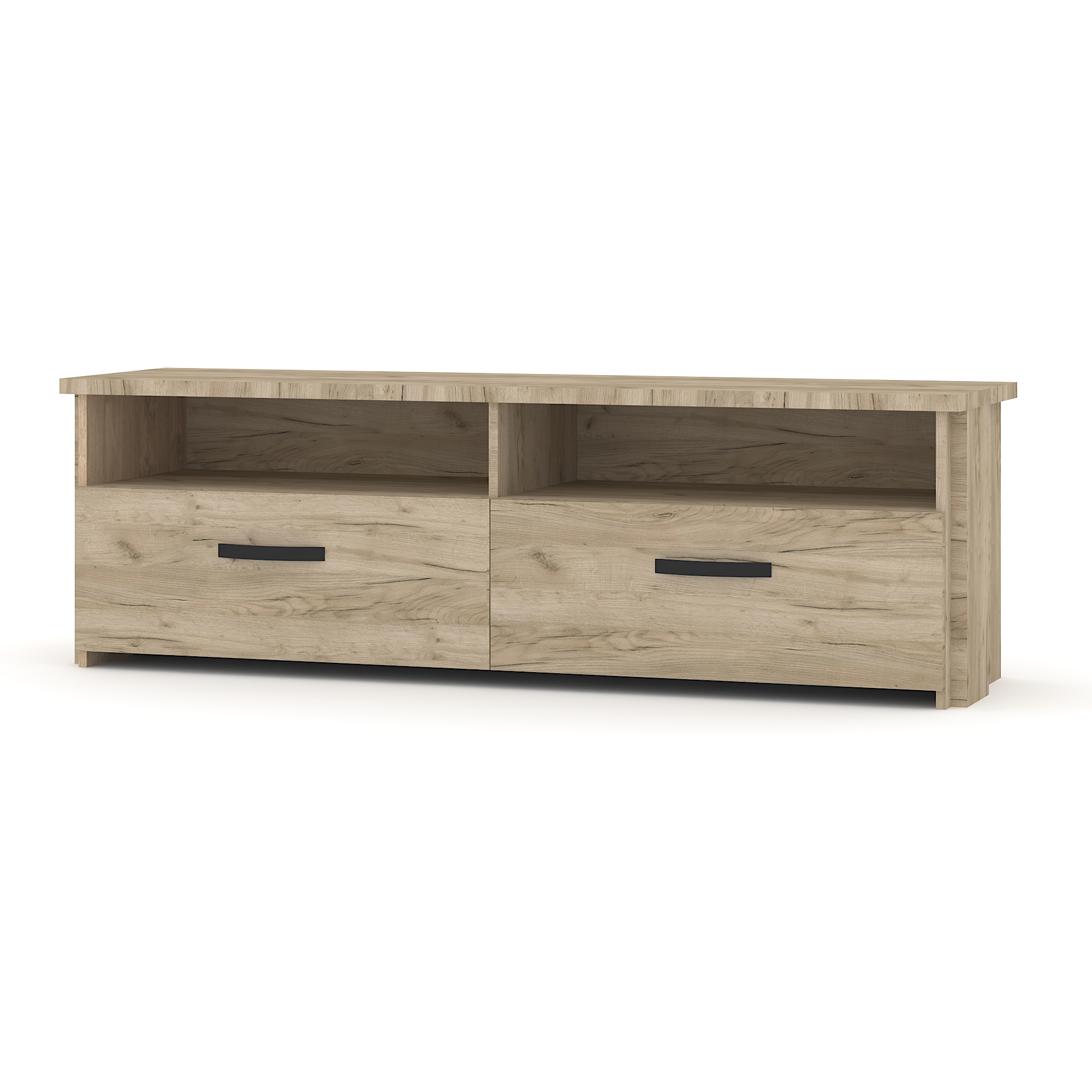 Έπιπλο τηλεόρασης Moon με δύο ντουλάπια. Ιδιαίτερος σχεδιασμός που θα δώσει μοντέρνα αισθητική στον χώρο σας. Το Light Sonoma Oak είναι διακριτικό ντεκόρ σε ανοιχτό μπεζ χρώμα και χαρακτηριστικό σχέδιο ξύλου. Τα ίχνη πριονίσματος και οι γκριζωπές ραβδώσεις παραπέμπουν σε vintage εμφάνιση. Διαθέτει πολυλειτουργική εφαρμογή επίπλων και φαίνεται καλά σε οικιακούς και επαγγελματικούς χώρους.