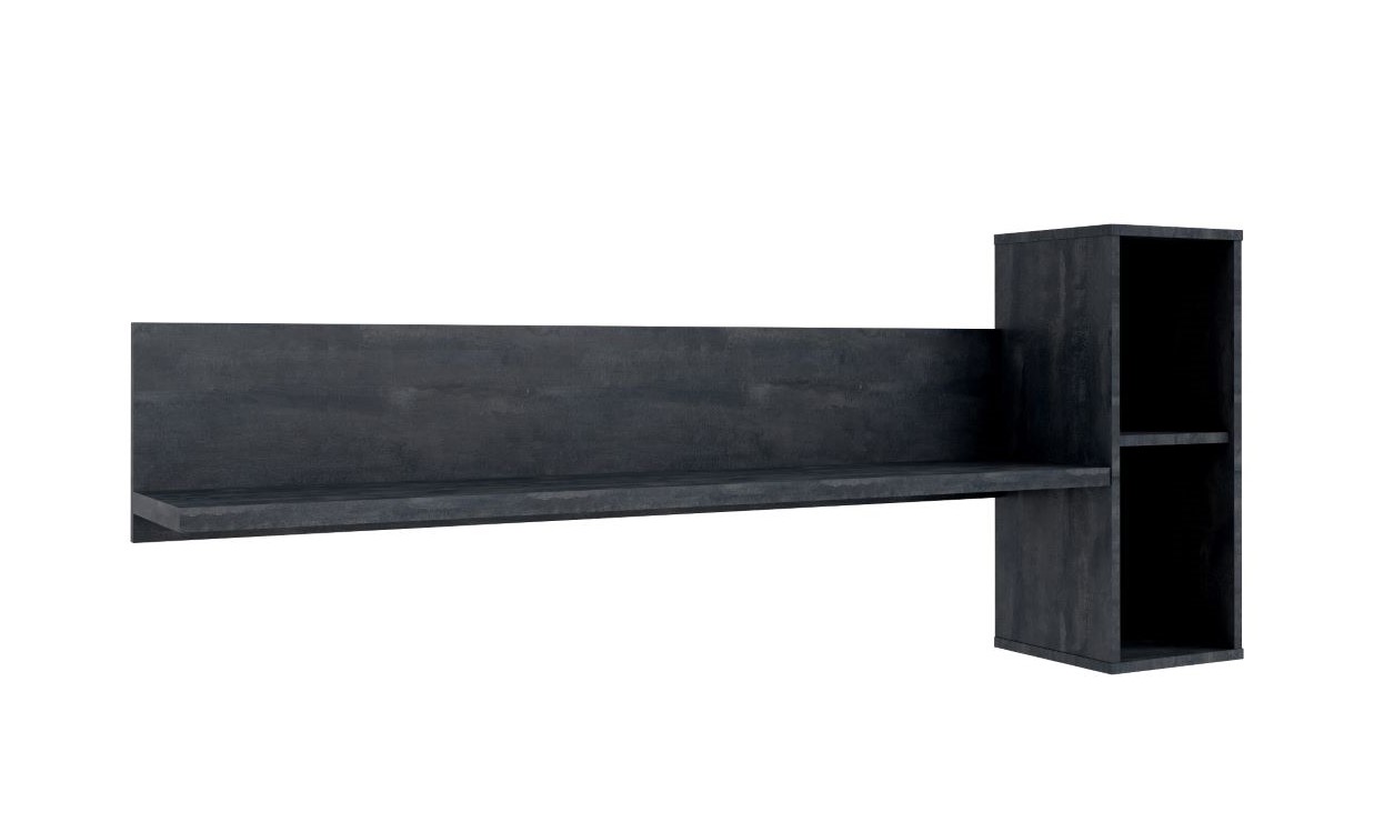 Επιτοίχια ραφιέρα Moon σε λιτή γραμμή. Το Charcoal Flow ξεχωρίζει με τις αποχρώσεις του ασημί και του γκρι ατσαλιού. Συνδυάζεται υπέροχα με πιο ανοιχτόχρωμα μονόχρωμα ντεκόρ, καθώς και με ντεκόρ ξύλου.