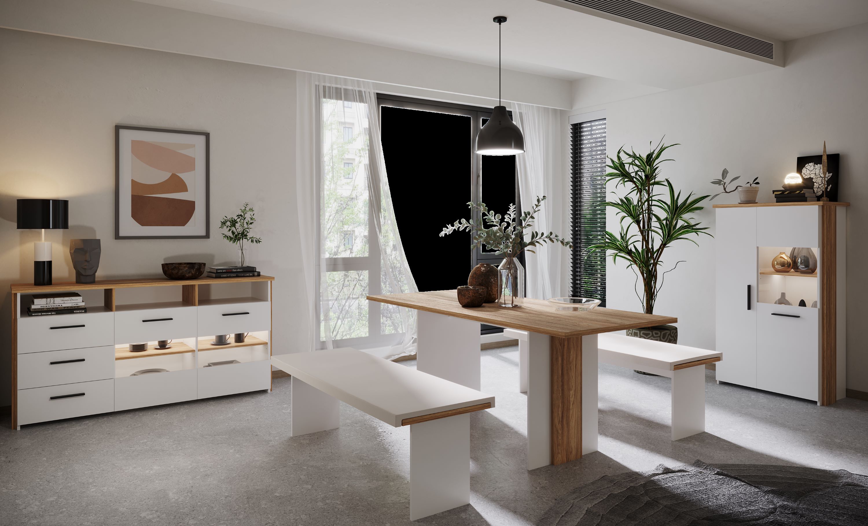 Σετ τραπεζαρίας, σε απόχρωση 0114 Opak White Glossy και K021 Barley Blackwood.