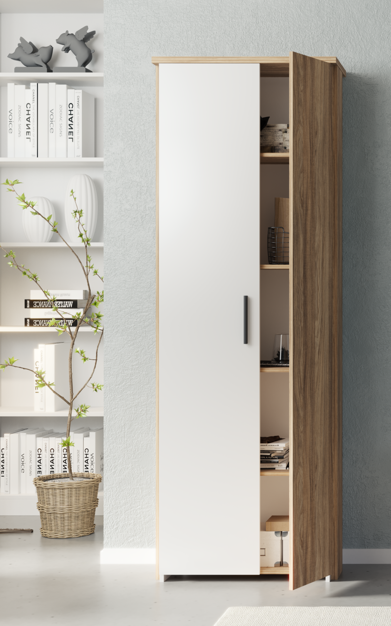 Ντουλάπα εισόδου 2-φυλλη Moon με δύο πόρτες και πέντε ράφια εσωτερικά. Μοντέρνος σχεδιασμός για αποθήκευση εισόδου. Το Light Sonoma Oak είναι διακριτικό ντεκόρ σε ανοιχτό μπεζ χρώμα και χαρακτηριστικό σχέδιο ξύλου. Τα ίχνη πριονίσματος και οι γκριζωπές ραβδώσεις παραπέμπουν σε vintage εμφάνιση. Διαθέτει πολυλειτουργική εφαρμογή επίπλων και φαίνεται καλά σε οικιακούς και επαγγελματικούς χώρους.