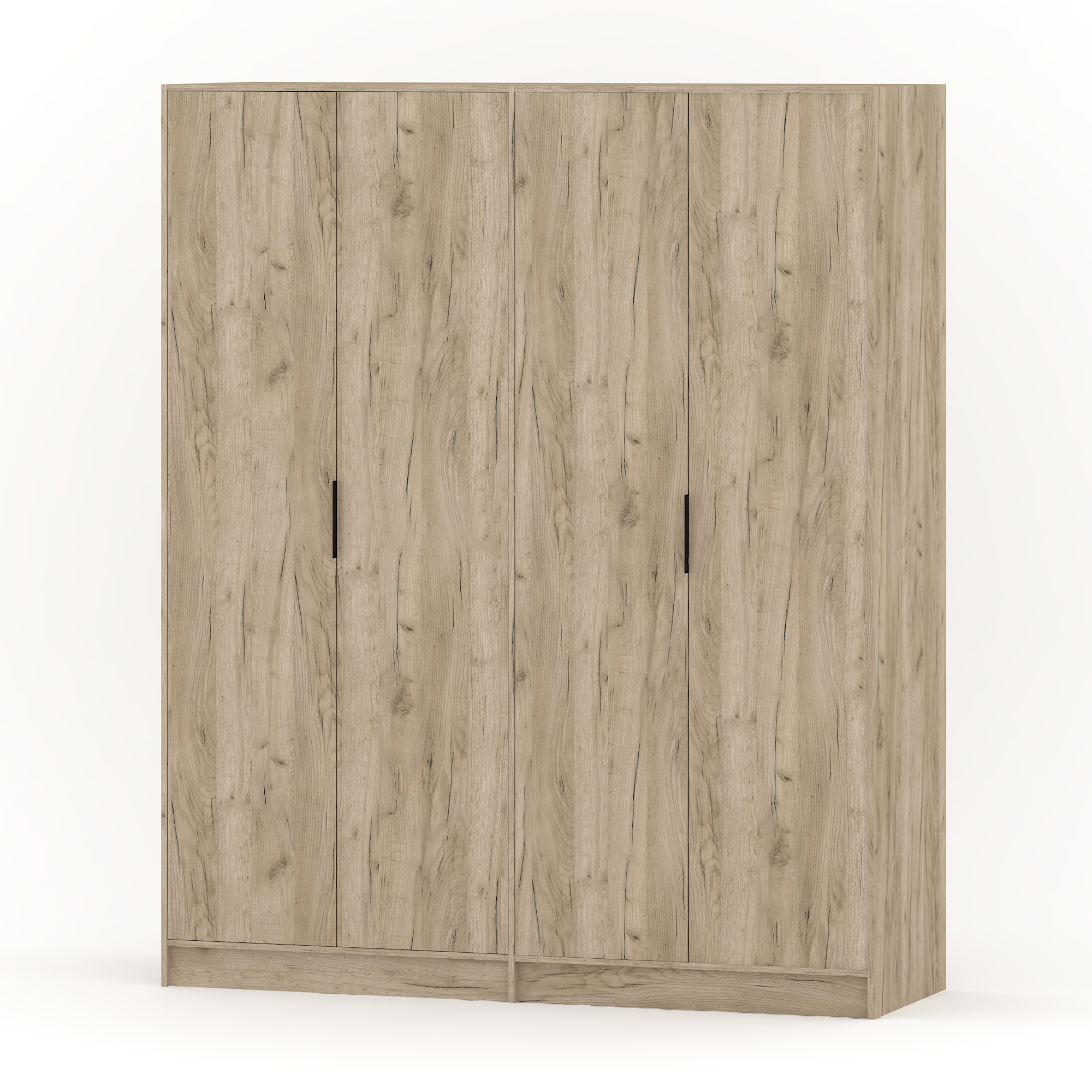 Ντουλάπα 4-φυλλη Rain σε λιτή γραμμή. Ιδανική αποθήκευση με ράφια και συρτάρια. Το Grey Craft Oak είναι δυνατό και εκφραστικό ντεκόρ ξύλου. Διαθέτει μείγμα από μπεζ και γκρι αποχρώσεις και αυθεντική υφή με ορατές ρωγμές και ρόζους. Εκπέμπει χαρακτήρα με τις φυσικές ατέλειές του.