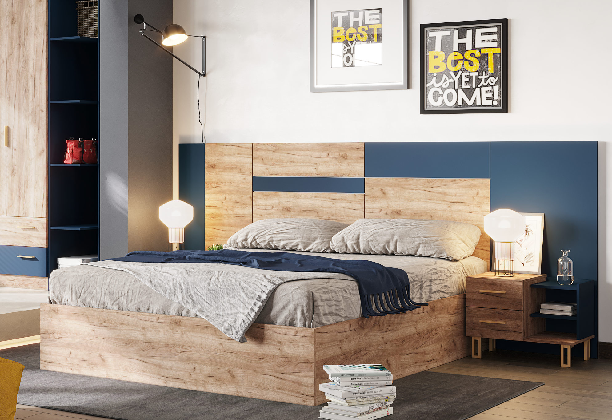 Κρεβάτι διπλό για στρώμα 160x200cm, σε απόχρωση K350 Concrete Flow και K002 Grey Craft Oak.
