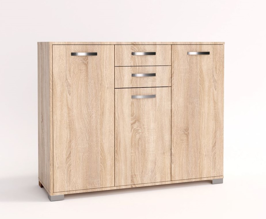 Έπιπλο αποθήκευσης με 3 ντουλάπια και 2 συρτάρια, σε απόχρωση 3025 Light Sonoma Oak.