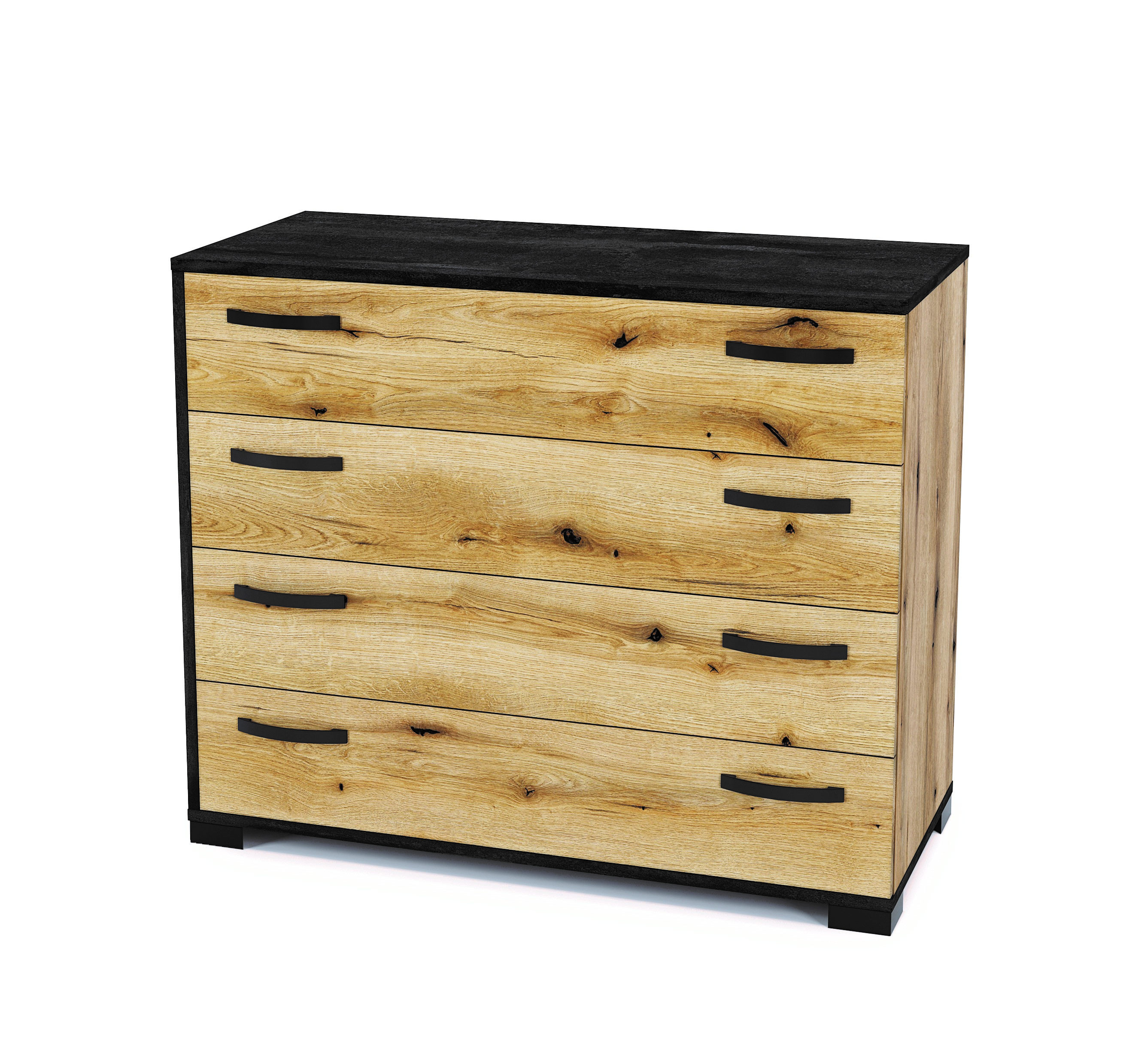 Συρταριέρα με 4 συρτάρια, σε απόχρωση K365 Coast Evoke Oak και K353 Charcoal Flow.