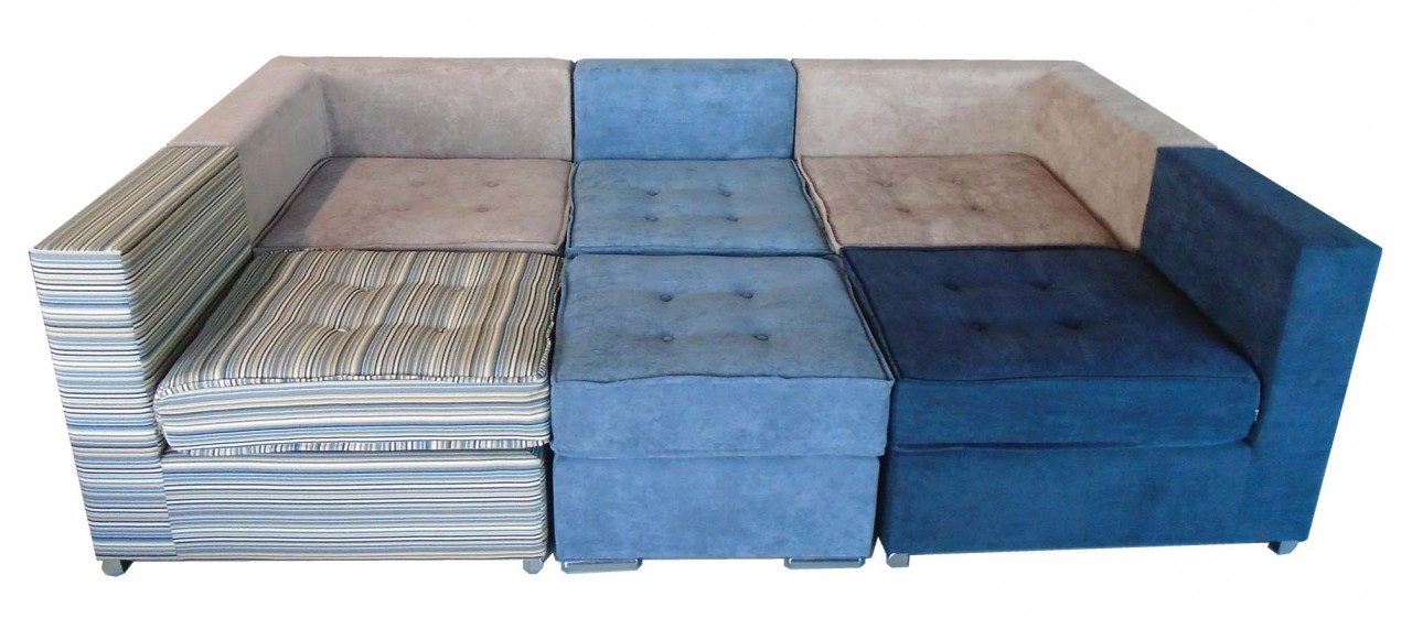 Σύστημα καναπέ αποτελούμενο από επτά (7) τεμάχια, με δυνατότητα πολλαπλής διάταξης και τοποθέτησης στο χώρο σας. Επιπλέον, υπάρχει η δυνατότητα διάταξης για χρήση ως κρεβάτι. Μαξιλάρια, διακοσμημένα με ρέλια και τραβήγματα.