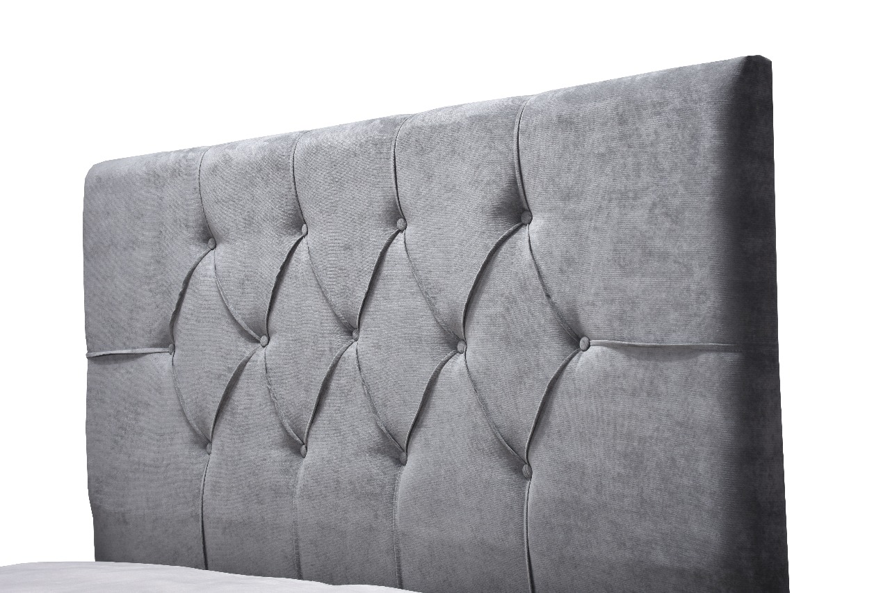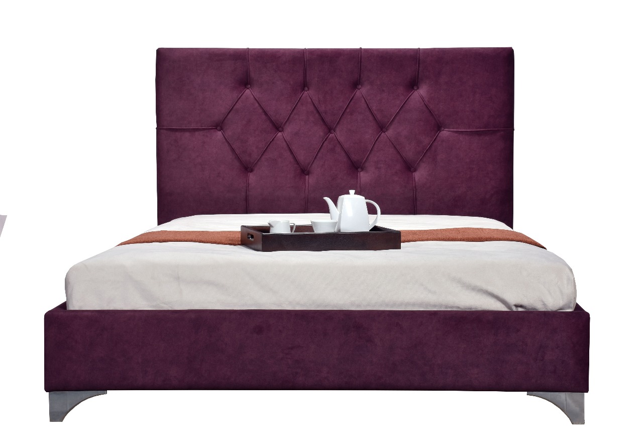 Κρεβάτι με ιδιαίτερο καπιτονέ κεφαλάρι. Φέρει μοναδικό σχέδιο με ρόμβους και κουμπιά.