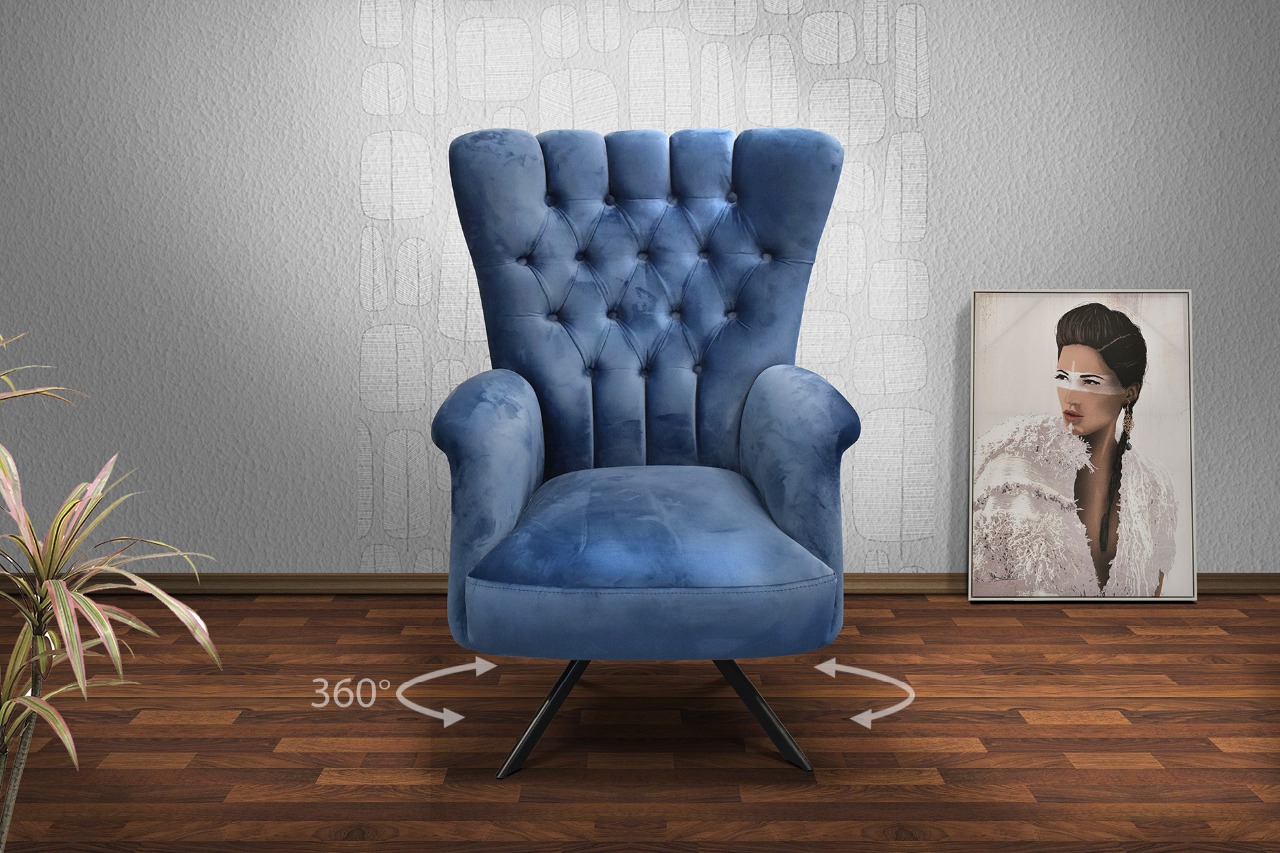 Κλασική καπιτονέ πολυθρόνα με μπράτσα και περιστρεφόμενη μεταλλική βάση 360°.