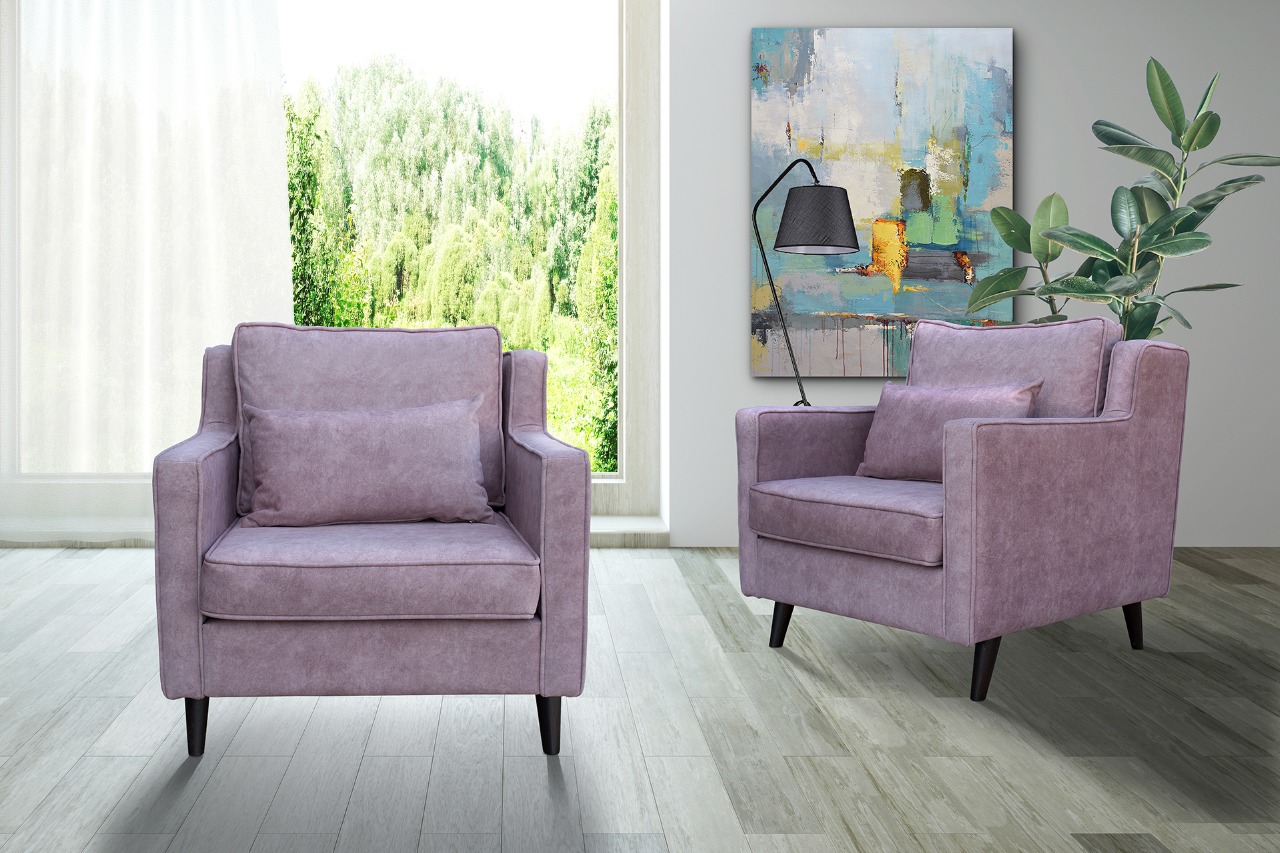 Πολυθρόνα με λεπτά τεθλασμένα μπράτσα. Ιδιαίτερες ραφές με διακοσμητικές λεπτομέρειες από κορδόνι.