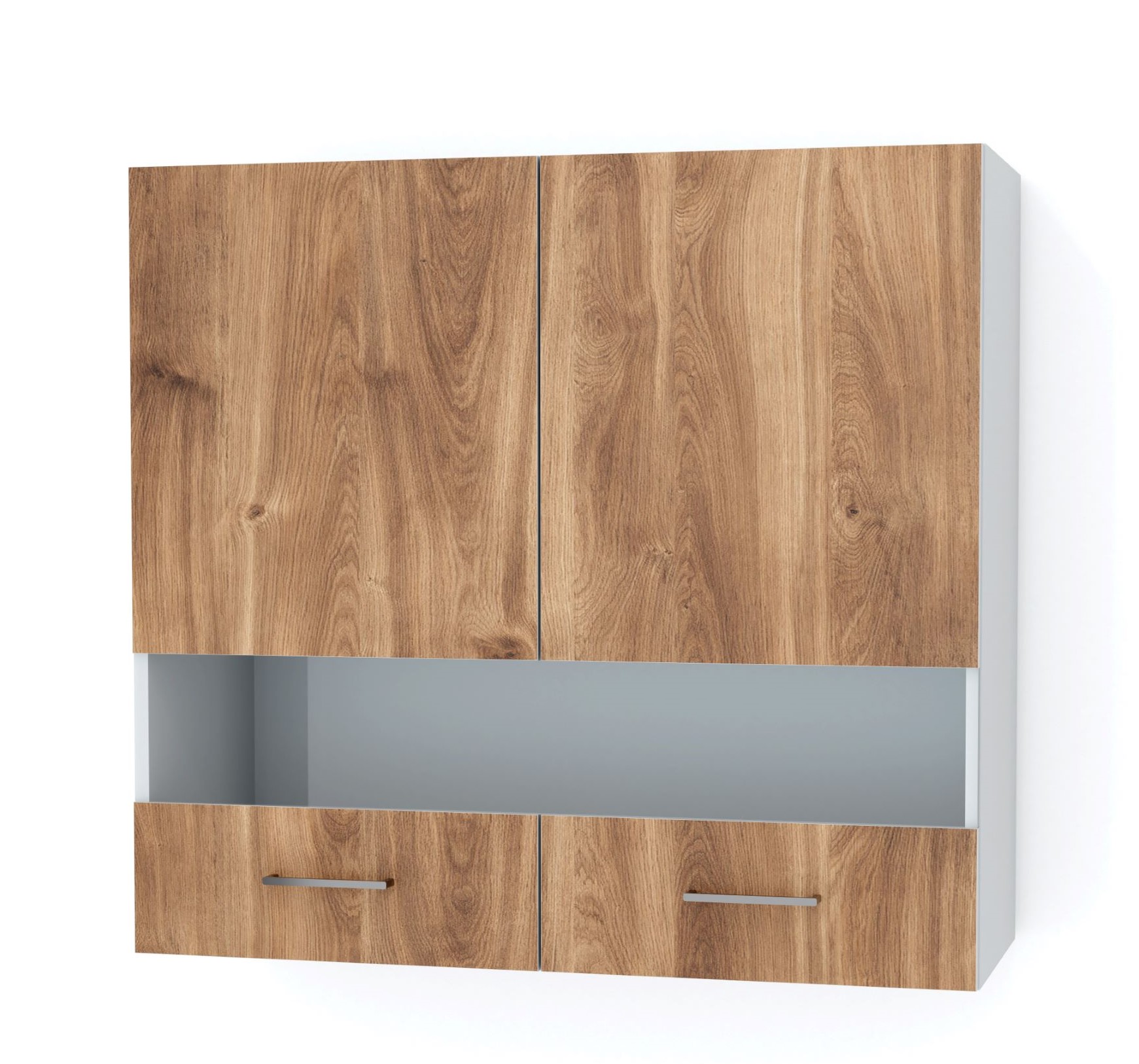 Ντουλάπι κουζίνας κρεμαστό, με ράφι και πορτάκια με γυαλί.