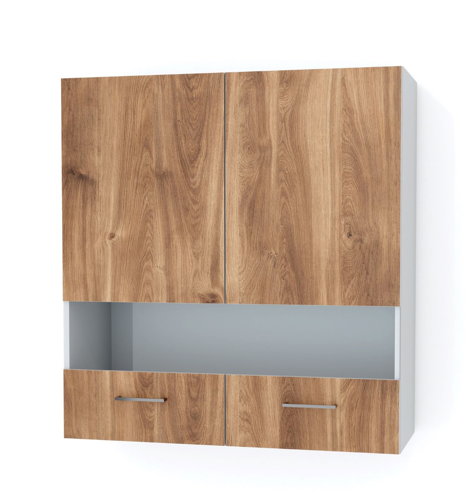 Ντουλάπι κουζίνας κρεμαστό, με 2 ράφια και πορτάκια με γυαλί.