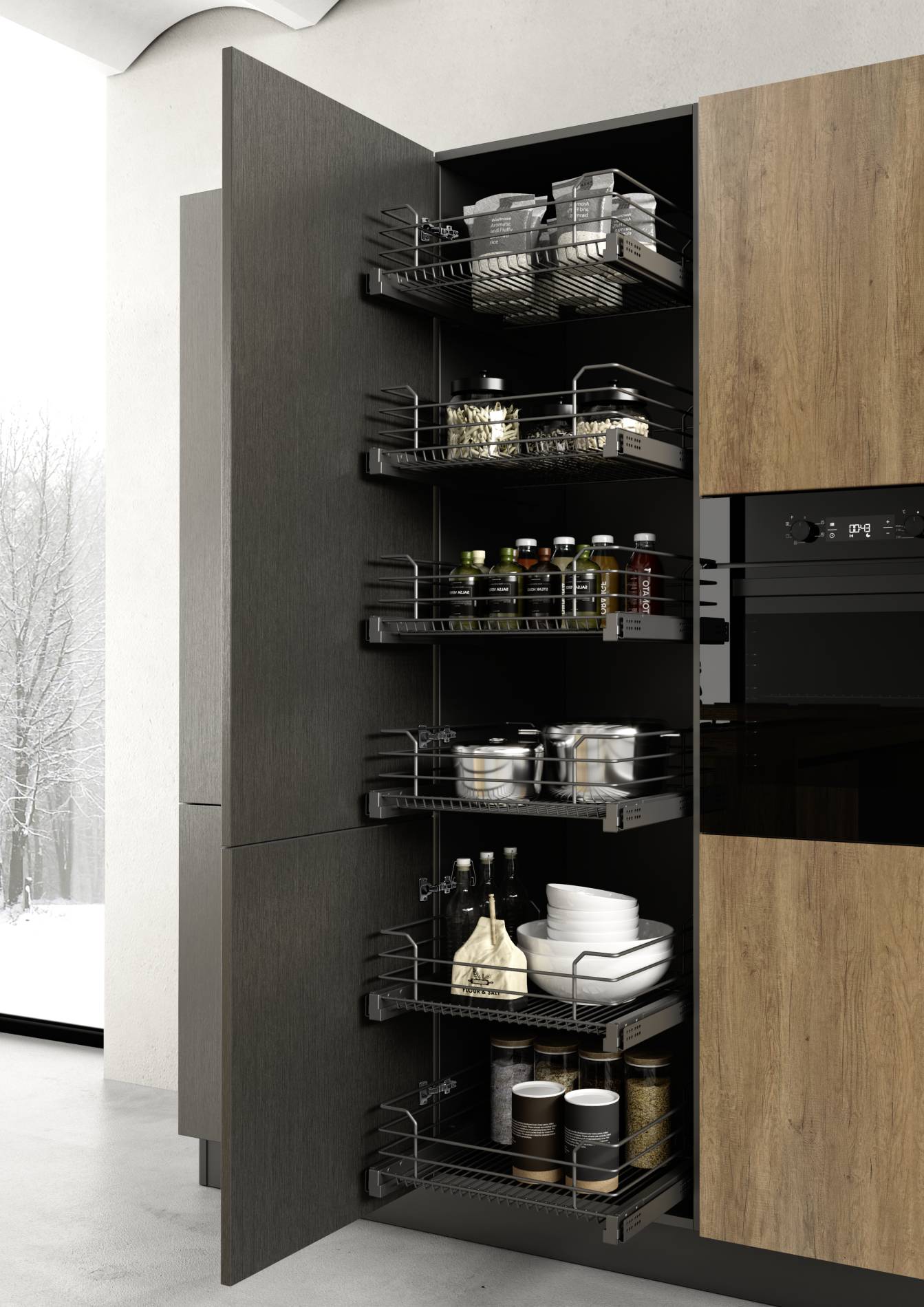 Έπιπλα κουζίνας σύγχρονης τεχνοτροπίας με γεύση από απαράμιλλη ιταλική αισθητική. Έρχονται στα μέτρα σας και προσαρμόζονται στις ανάγκες του χώρου σας. Επικοινωνήστε μαζί μας για να προχωρήσουμε σε επίδειξη και περισσότερες λεπτομέρειες.