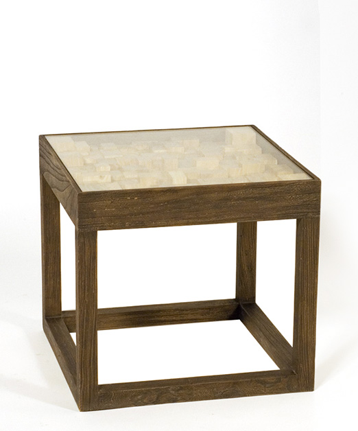 Το επάνω μέρος είναι διακοσμημένο απο ξύλινα κυβάκια και προστατεύται με γυάλινο καπάκι.