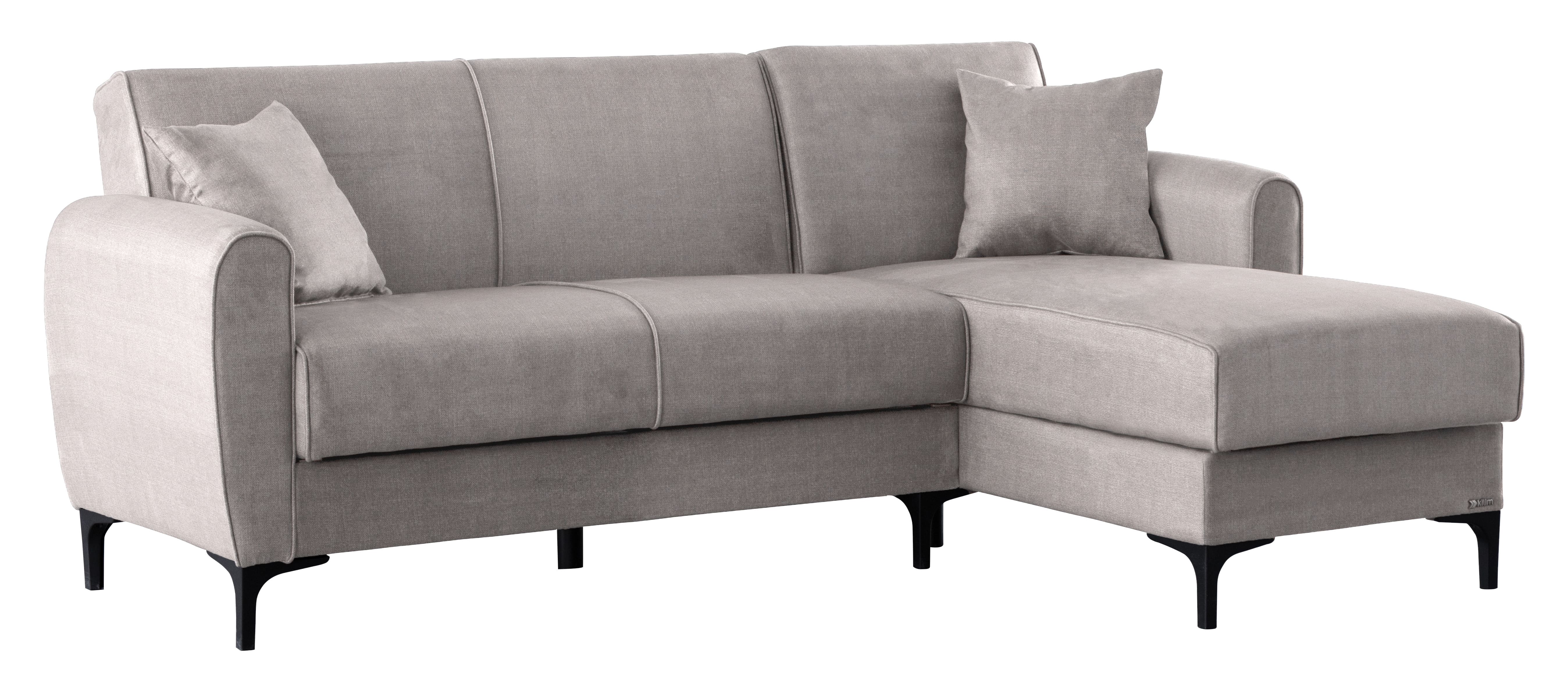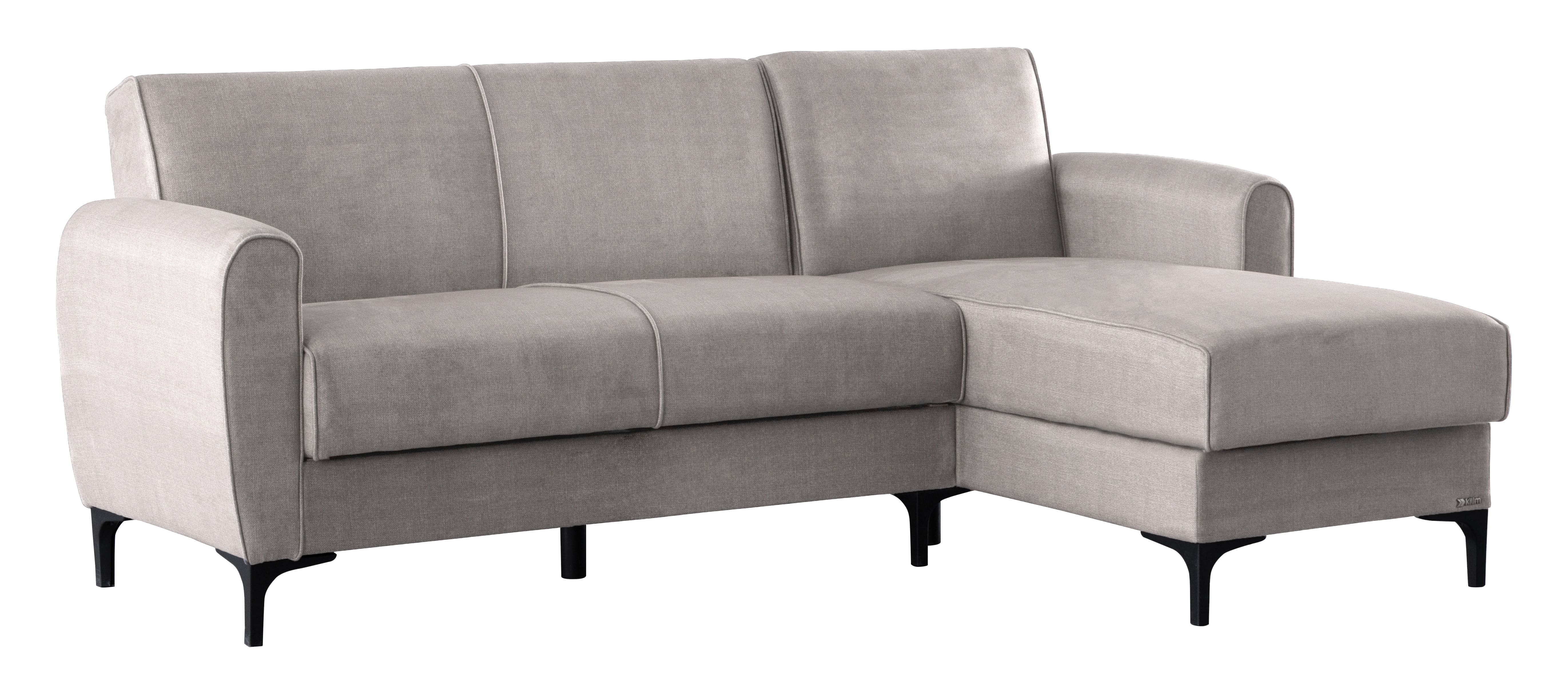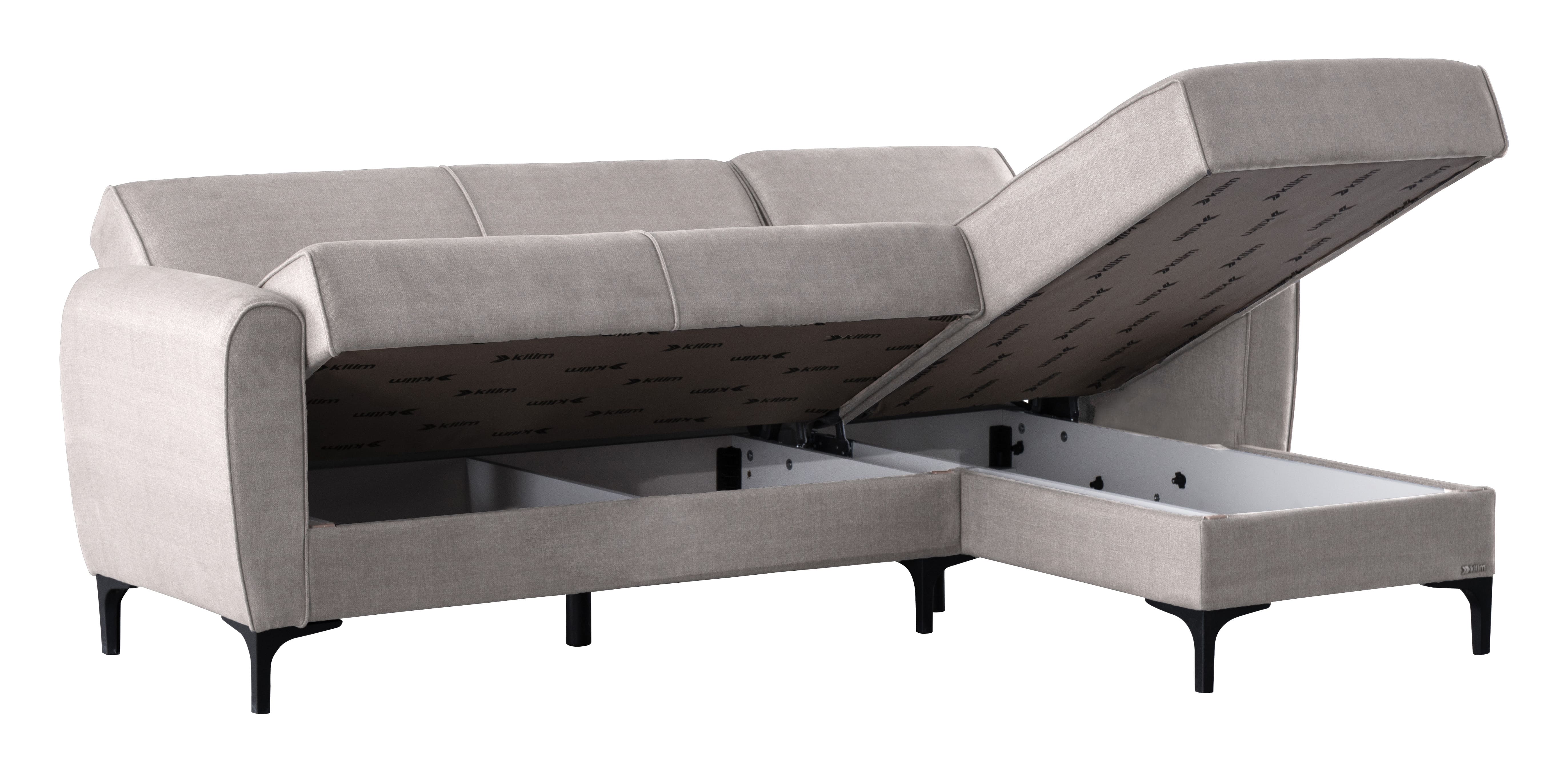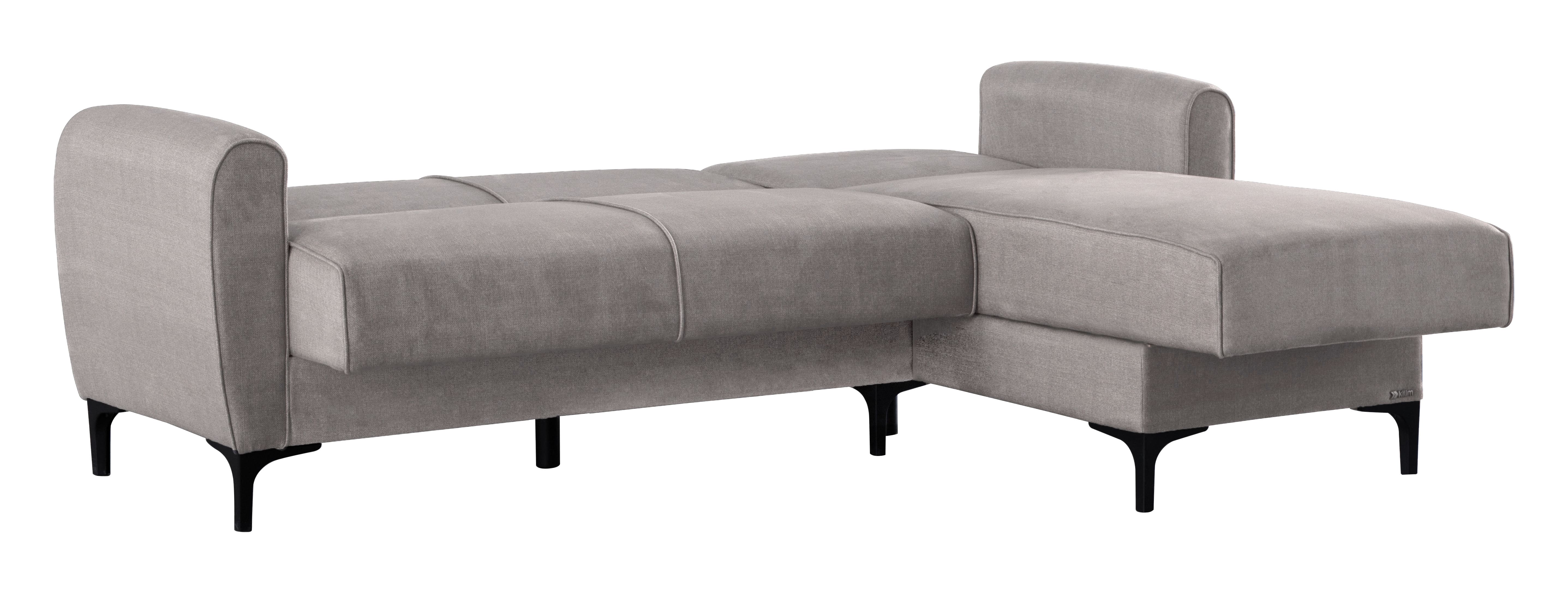 Γωνιακός καναπές με αναστρέψιμη γωνία, σε μίνιμαλ μοντέρνο ύφος. Δυνατότητα εφαρμογής ως κρεβάτι. Διαθέτει αποθηκευτικό χώρο σε όλο το μήκος του.