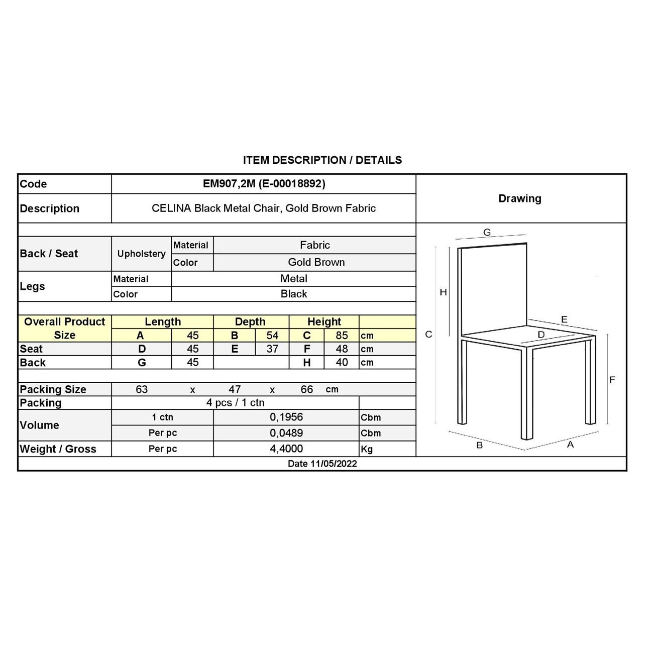 ΕΜ907,2Μ CELINA Καρέκλα Μεταλλική Μαύρη/Ύφασμα Καφέ