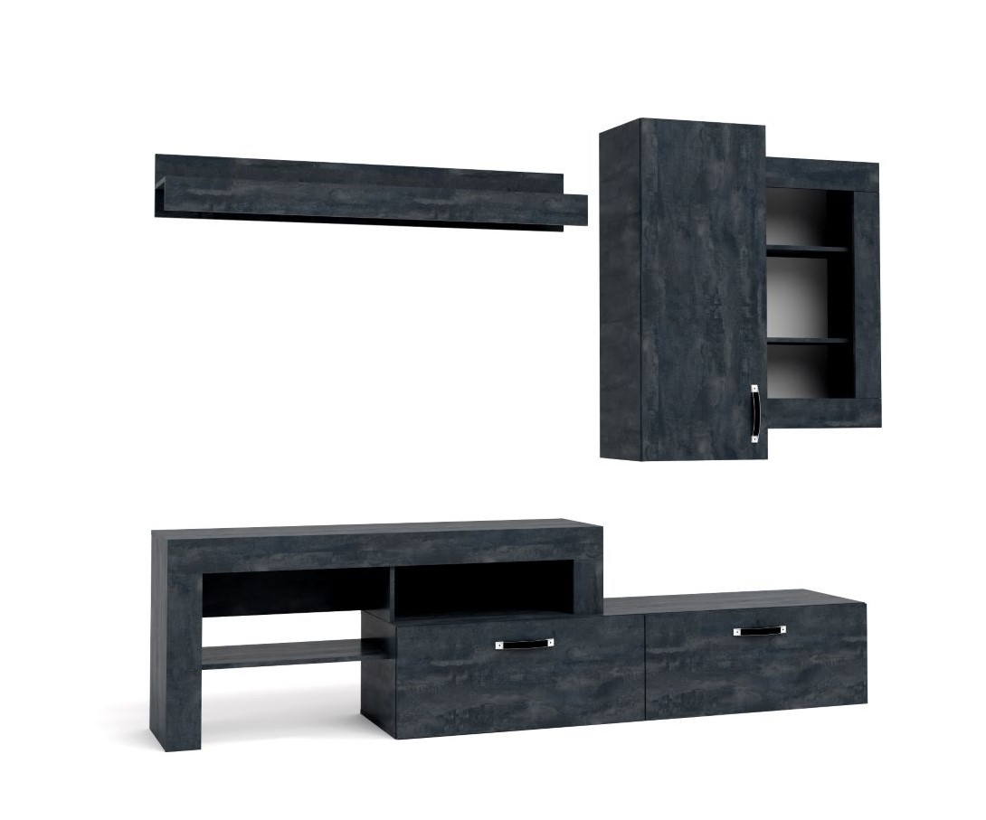 Σύνθεση σαλονιού Bari, με πολλούς αποθηκευτικούς χώρους και λιτή γραμμή. Ιδιαίτερα στολισμένες λεπτομέρειες και διαφορετικής χωρητικότητας αποθηκευτικούς χώρους στην βάση, τονίζει το μοντέρνο design. Σχεδιασμένη για να καλύπτει όλες τις ανάγκες σας και διακοσμεί μοναδικά το σαλόνι σας. Κατασκευασμένη από υλικά α' ποιότητας, με πολλές επιλογές για να διαλέξετε αυτό που θα ικανοποιήσει τις δικές σας ανάγκες. Το Charcoal Flow ξεχωρίζει με τις αποχρώσεις του ασημί και του γκρι ατσαλιού. Συνδυάζεται υπέροχα με πιο ανοιχτόχρωμα μονόχρωμα ντεκόρ, καθώς και με ντεκόρ ξύλου