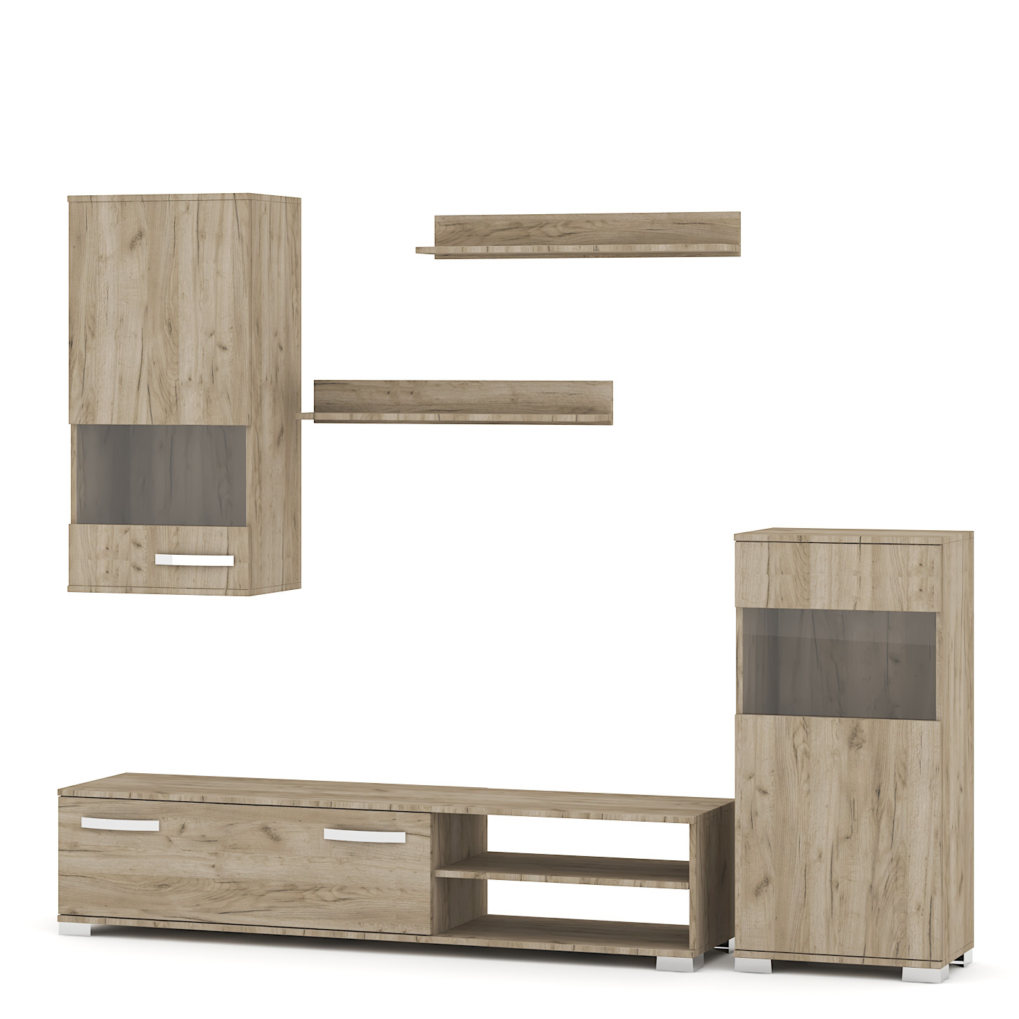 Σύνθεση σαλονιού με ντουλάπι,ράφια και δυο βιτρίνες. Το Charcoal Flow ξεχωρίζει με τις αποχρώσεις του ασημί και του γκρι ατσαλιού. Συνδυάζεται υπέροχα με πιο ανοιχτόχρωμα μονόχρωμα ντεκόρ, καθώς και με ντεκόρ ξύλου.