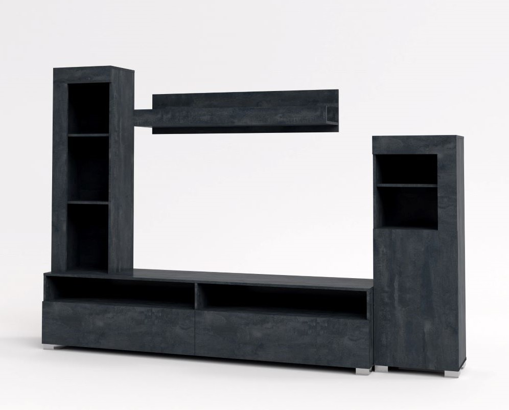 Σύνθεση σαλονιού Paloma με πολλούς αποθηκευτικούς χώρους και λιτή γραμμή. Ιδιαίτερα στολισμένες λεπτομέρειες και διαφορετικής χωρητικότητας αποθηκευτικούς χώρους. Σχεδιασμένη για να καλύπτει όλες τις ανάγκες σας και διακοσμεί μοναδικά το σαλόνι σας. Το Charcoal Flow ξεχωρίζει με τις αποχρώσεις του ασημί και του γκρι ατσαλιού. Συνδυάζεται υπέροχα με πιο ανοιχτόχρωμα μονόχρωμα ντεκόρ, καθώς και με ντεκόρ ξύλου.
